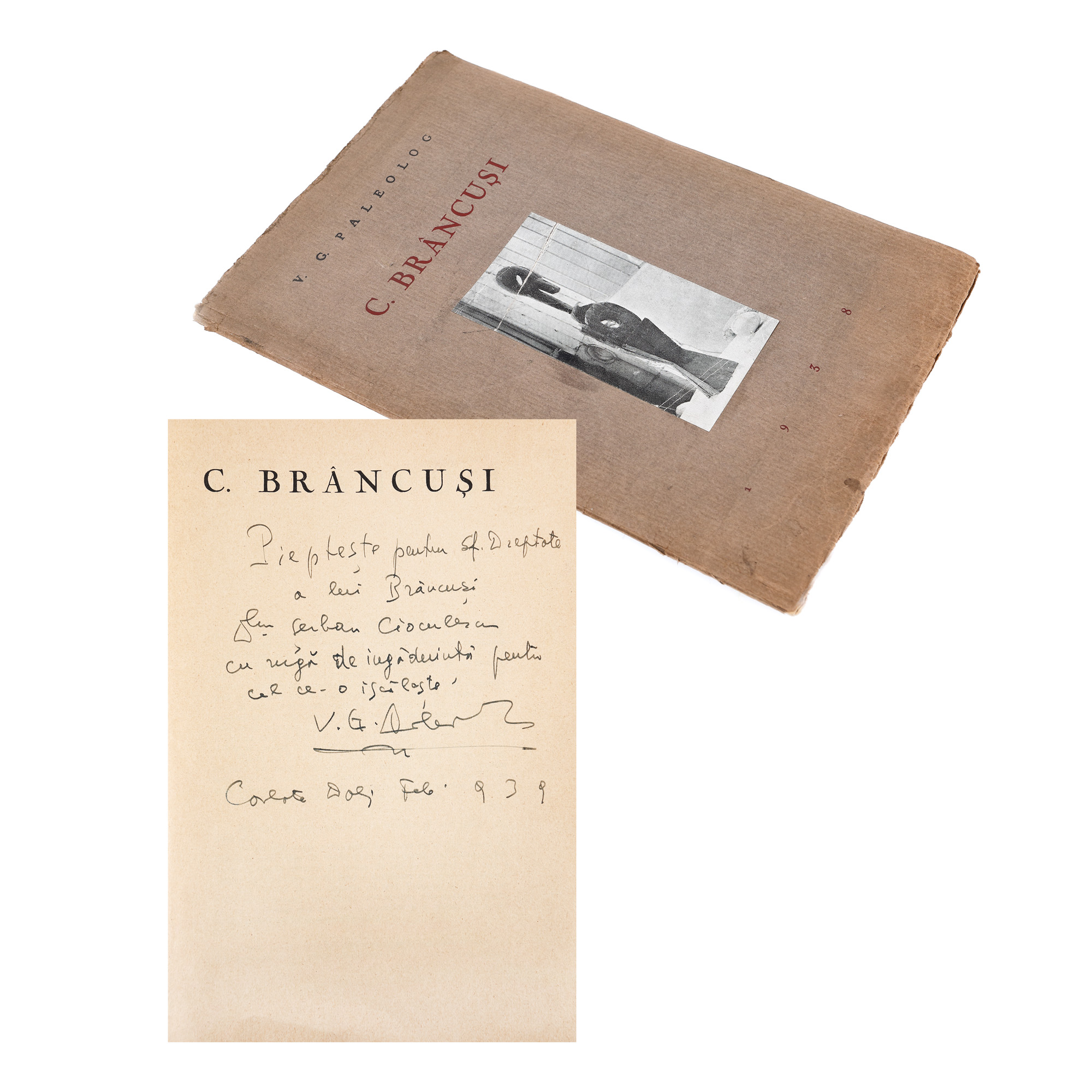 102. ”Constantin Brâncuși”, de Vasile Georgescu Paleolog, București, 1938, cu dedicația autorului către Șerban Cioculescu, provine din colecția criticului literar Șerban Cioculescu