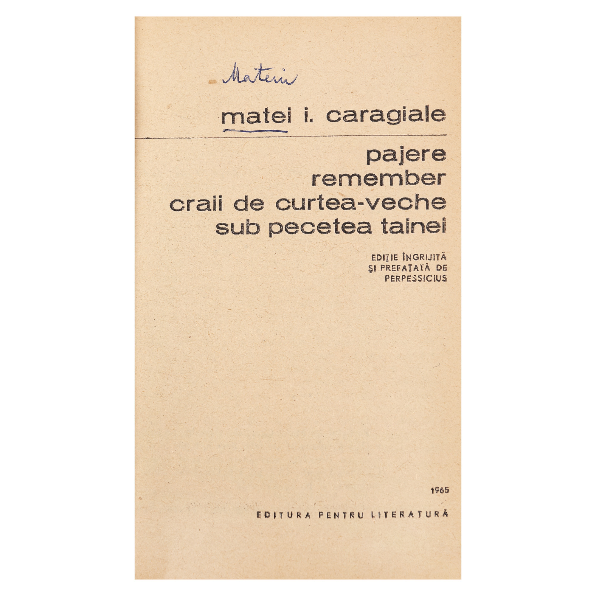 92. ”Craii de curte veche”, de Mateiu Caragiale, București, 1965, cu dedicația lui Perpessicius către Șerban Cioculescu, provine din colecția criticului literar Șerban Cioculescu
