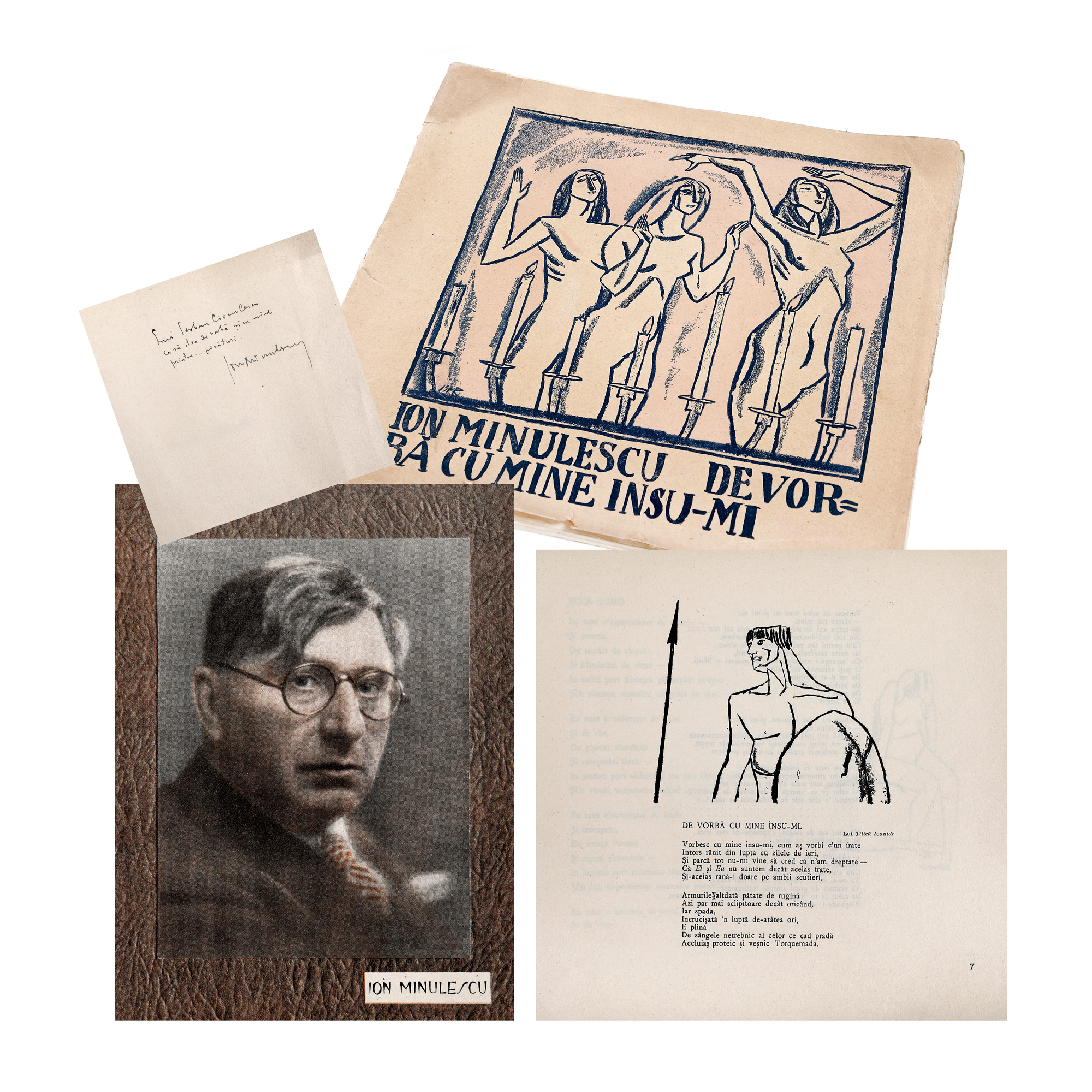 Exemplarul cuprinde și o poezie copiată cu roșu de criticul literar Șerban Cioculescu din opera lui Minulescu.