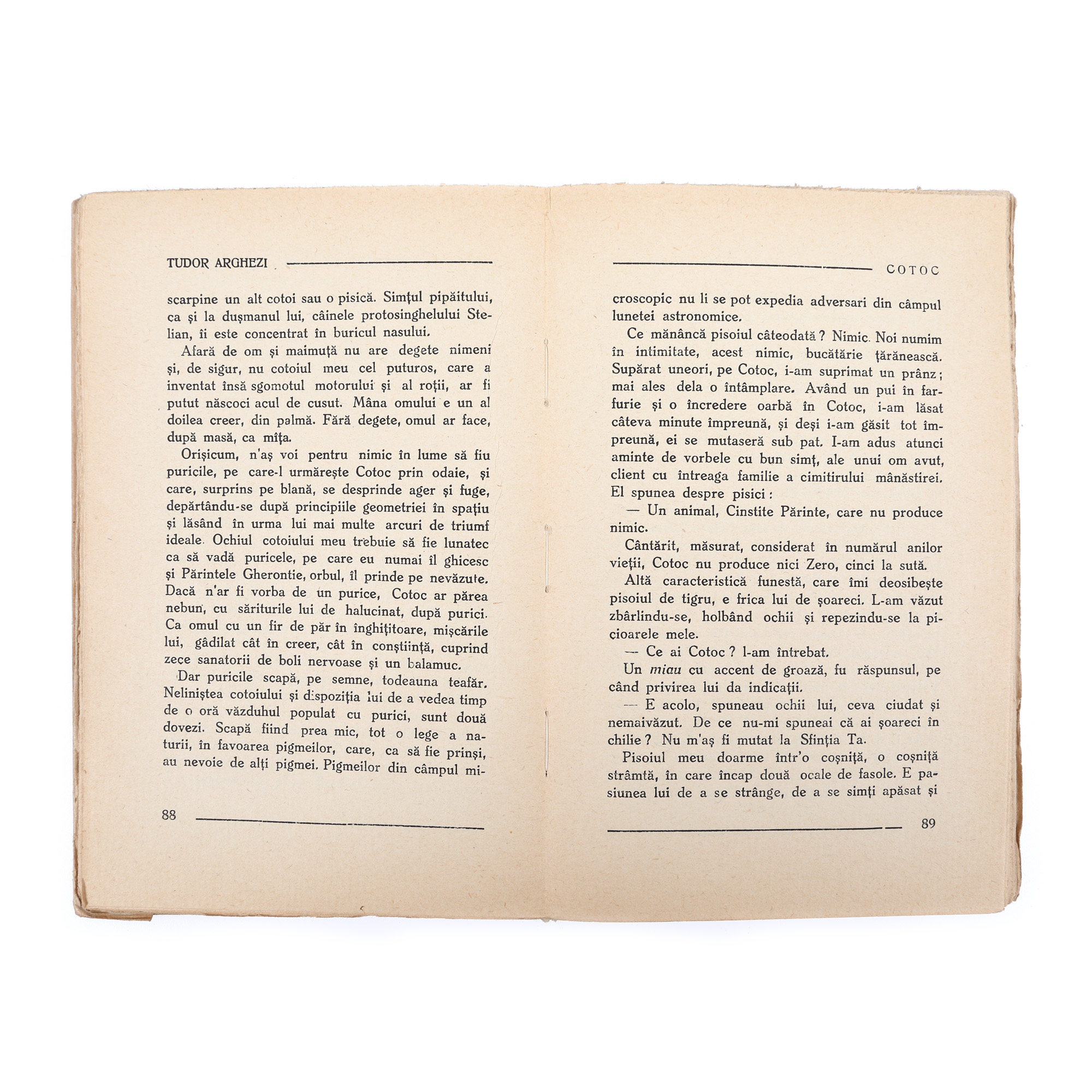 Exemplarul cuprinde o dedicație olografă, datată și semnată, a autorului, două tăieturi din reviste literare cu articole ale lui Arghezi și un fluturaș publicitar referitor la volum.