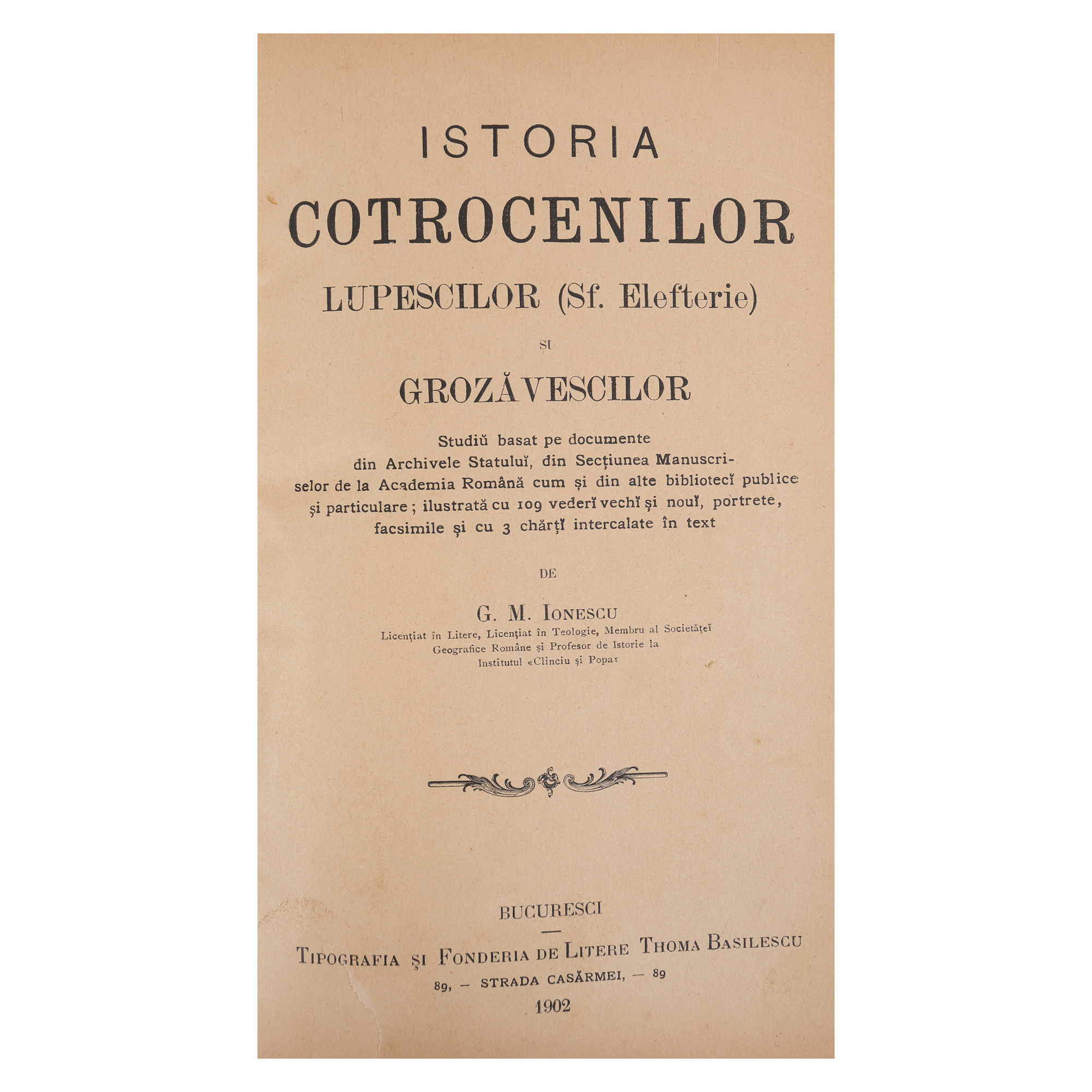 169. "Istoria Cotrocenilor Lupescilor (Sfântul Elefterie) și Grozăvescilor", de G. M. Ionescu, București, 1902