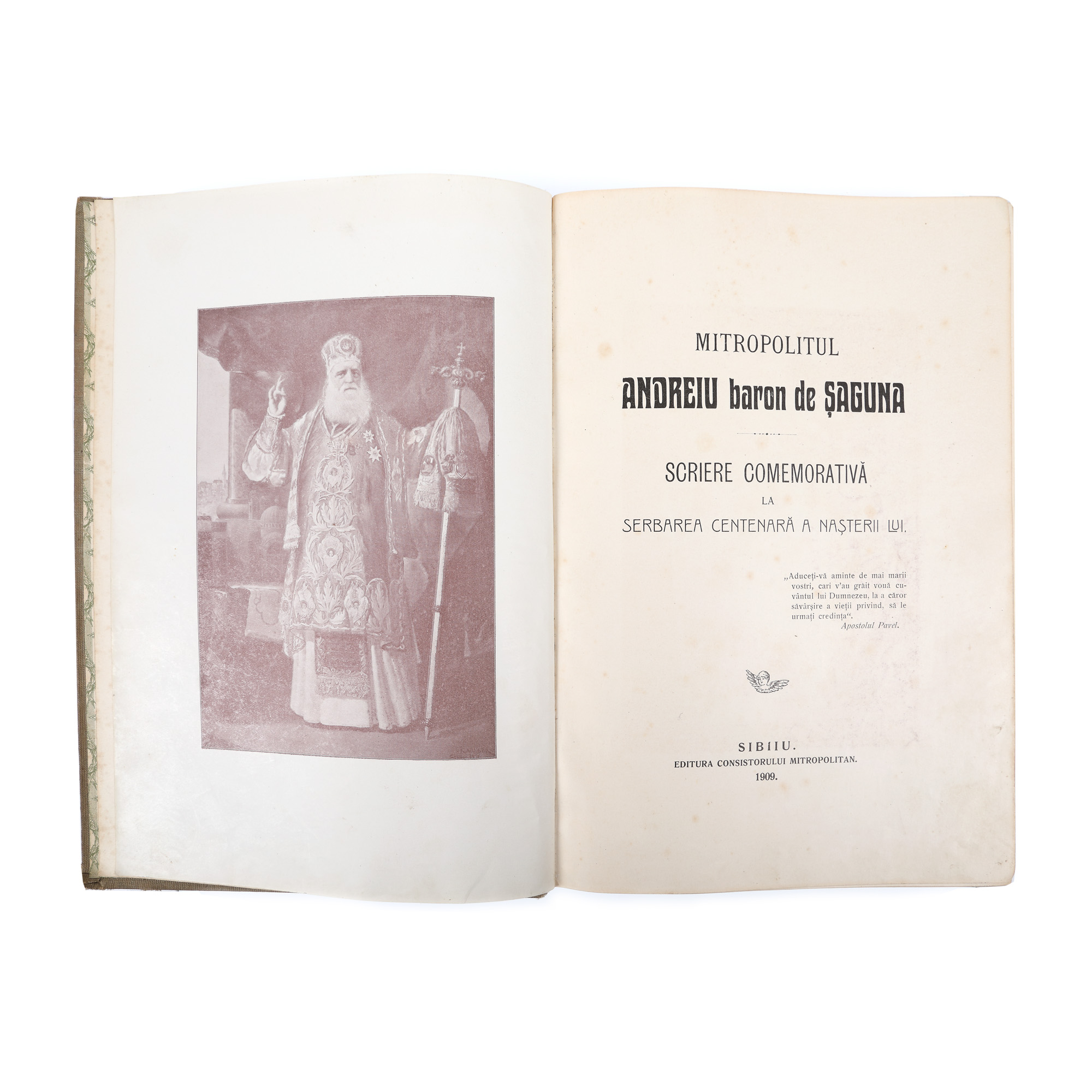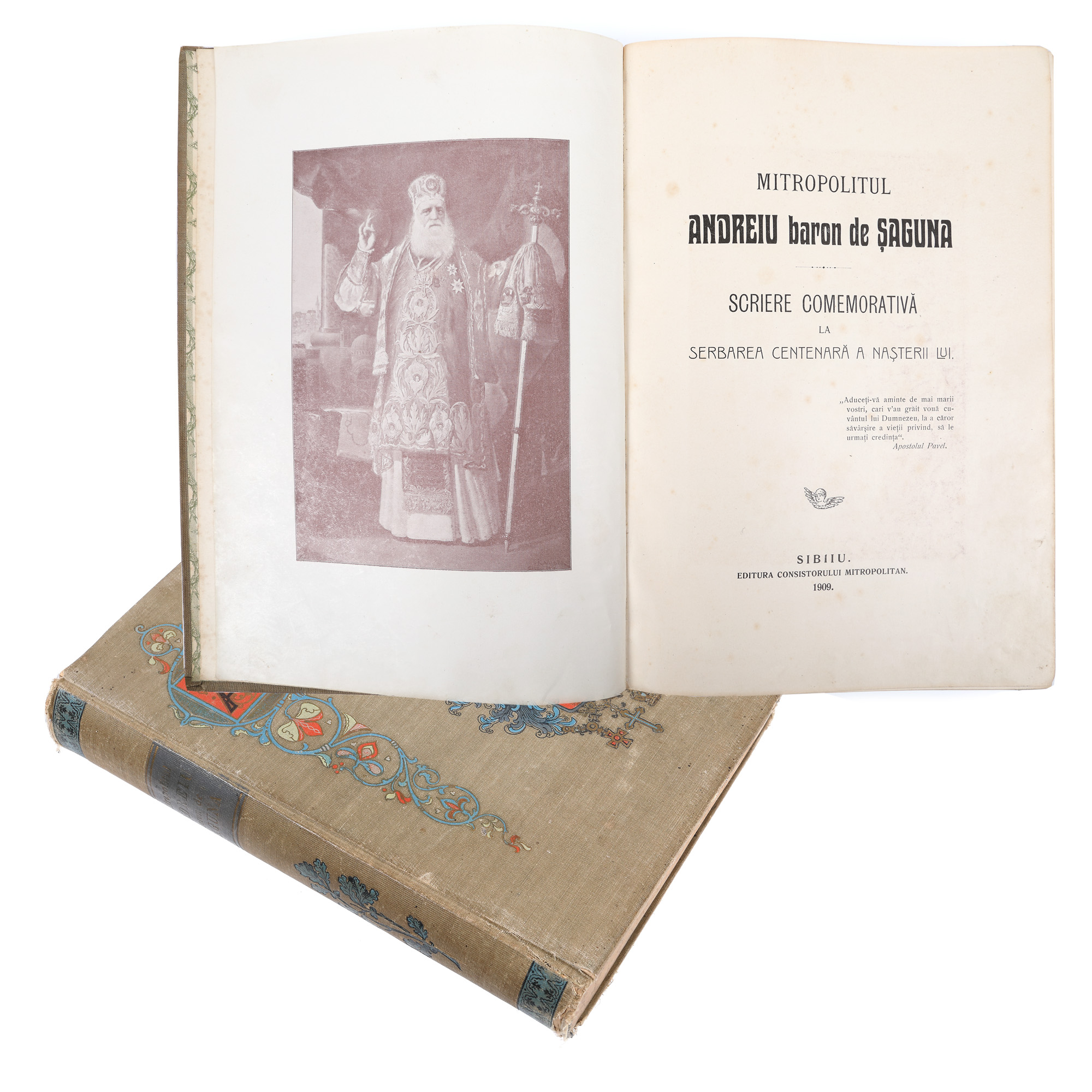 173. "Mitropolitul Andreiu baron de Șaguna", Sibiu, 1909, biografie a Mitropolitului românilor ortodocși din Transilvania, cel ce a avut un rol esențial în introducerea învățământului în limba română în comunitățile din Transilvania sub ocupație austro-ungară