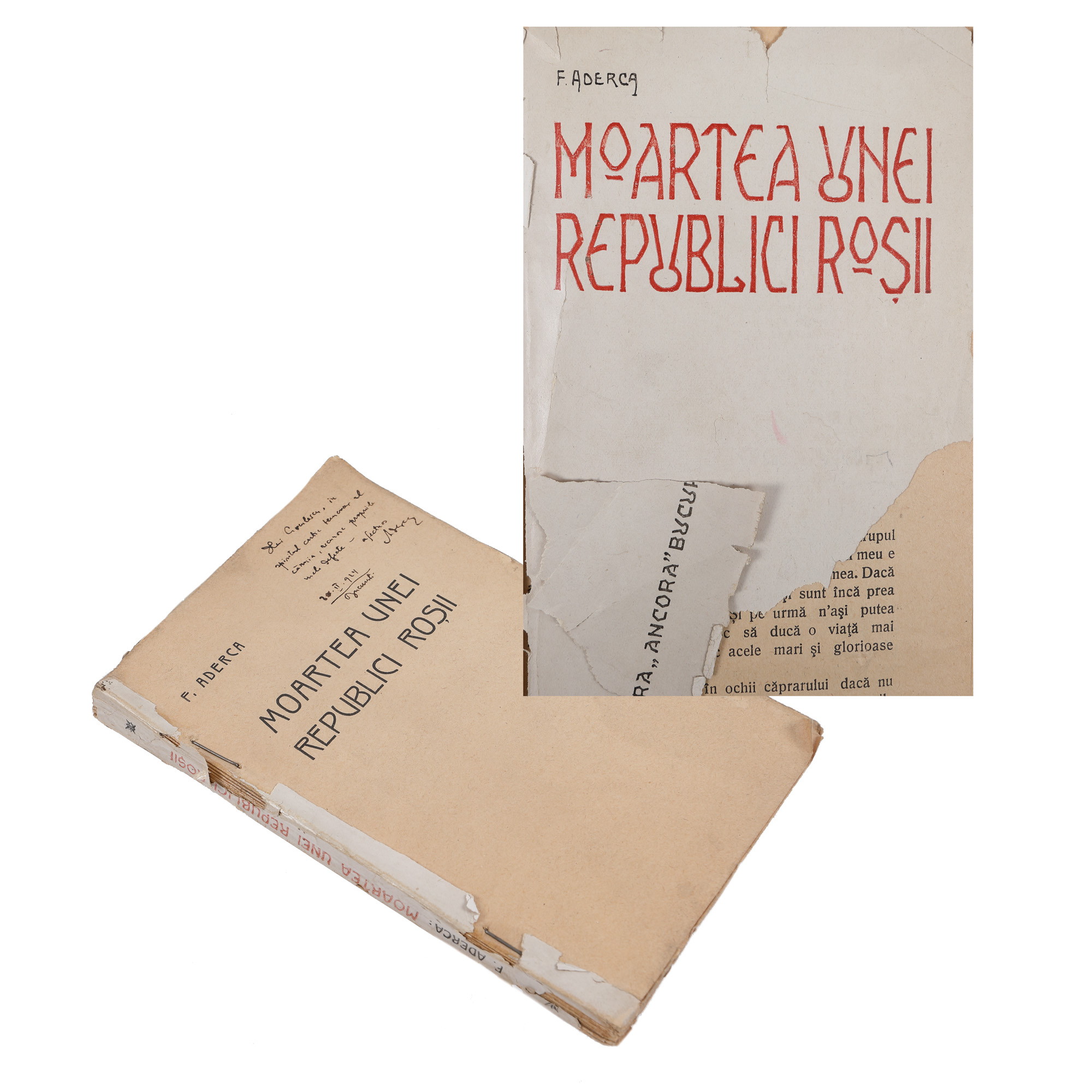 105. ”Moartea unei republici roșii”, de Felix Aderca, București, 1924, cu dedicația autorului către Șerban Cioculescu, provine din colecția criticului literar Șerban Cioculescu