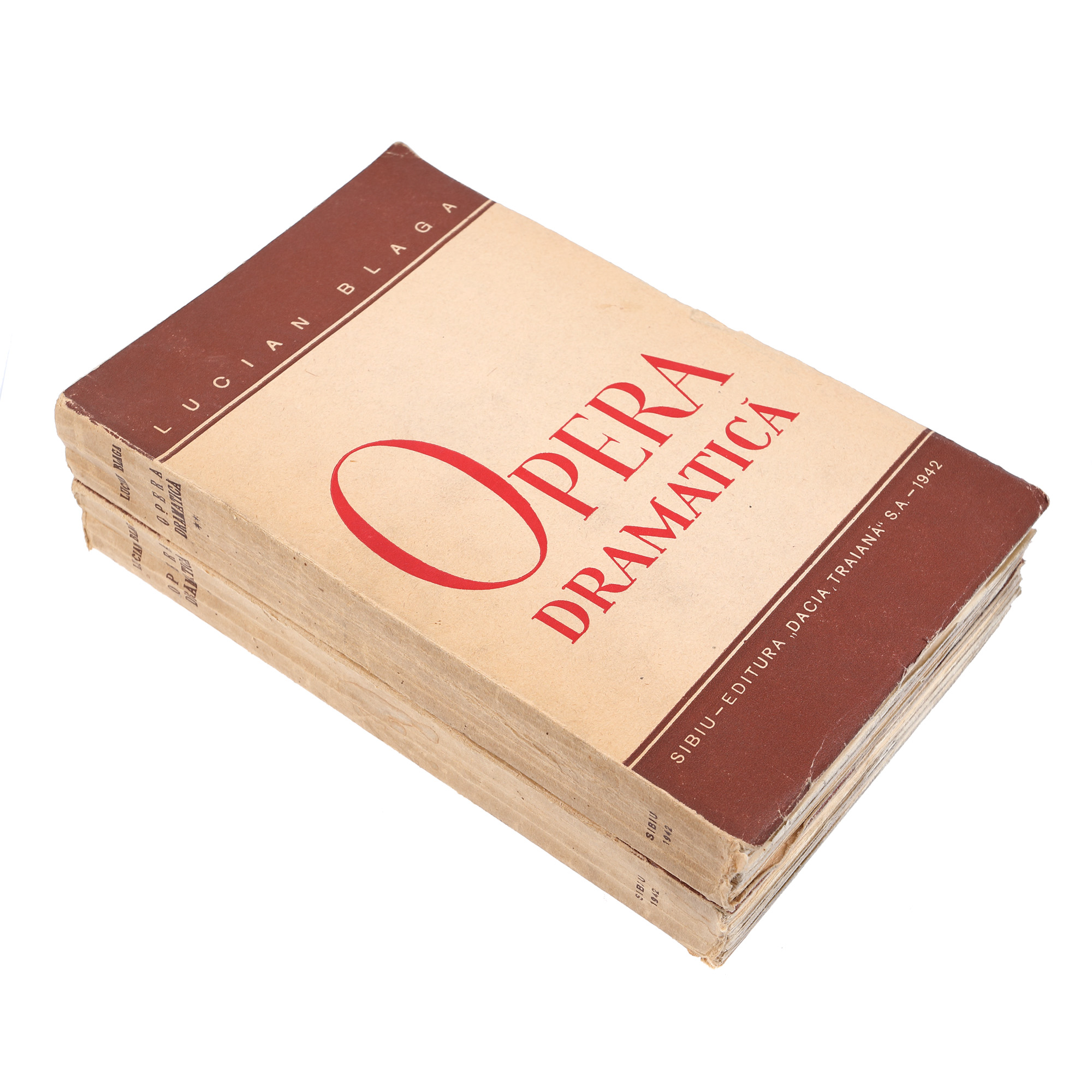 129. "Opera dramatică" de Lucian Blaga, două volume, Sibiu, 1942, cu dedicația și semnătura olografă a autorului, provine din colecția scriitorului Vania Gherghinescu