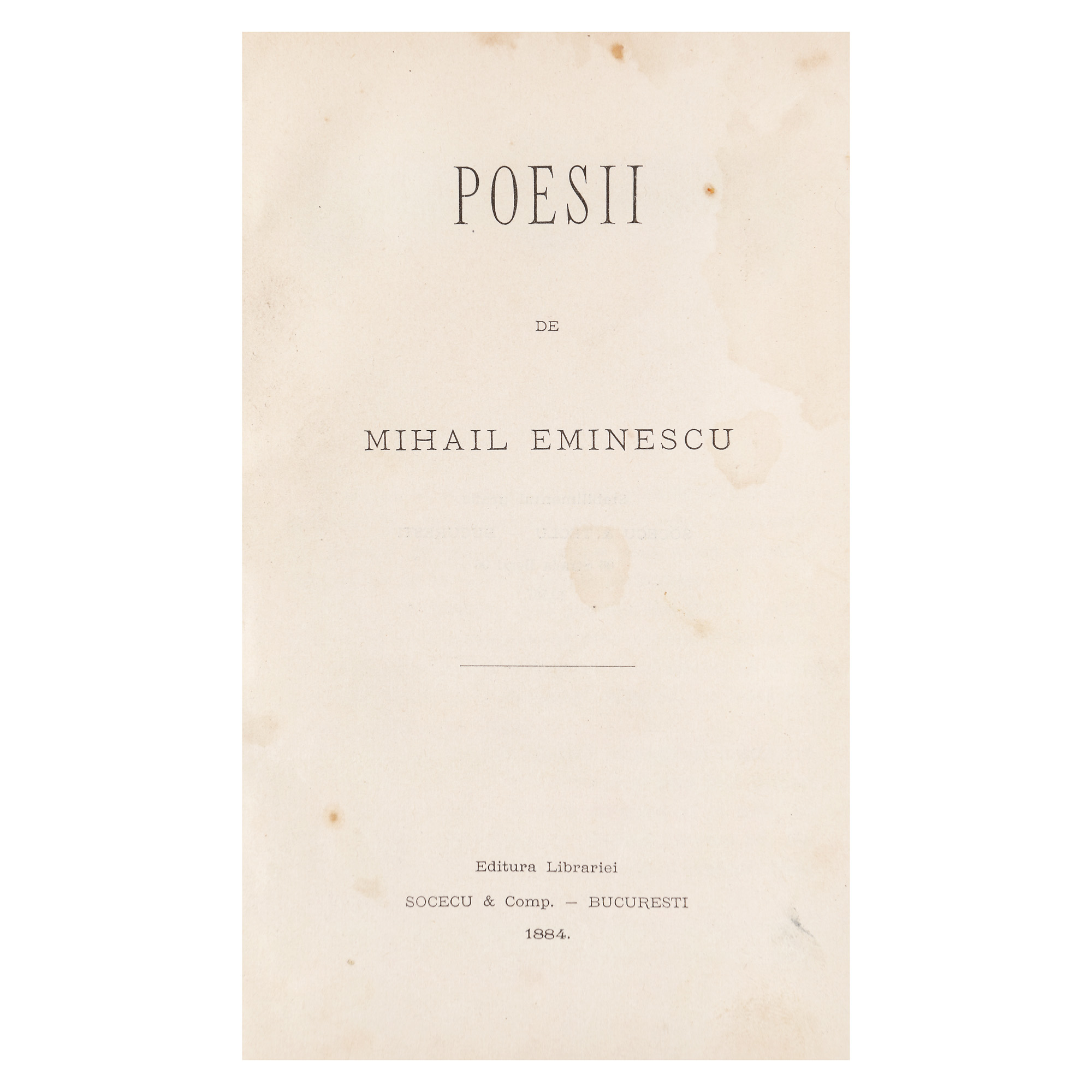 133. ”Poesii”, de Mihai Eminescu, ediție princeps, București, 1884, provine din colecția criticului literar Șerban Cioculescu, piesă de colecție
