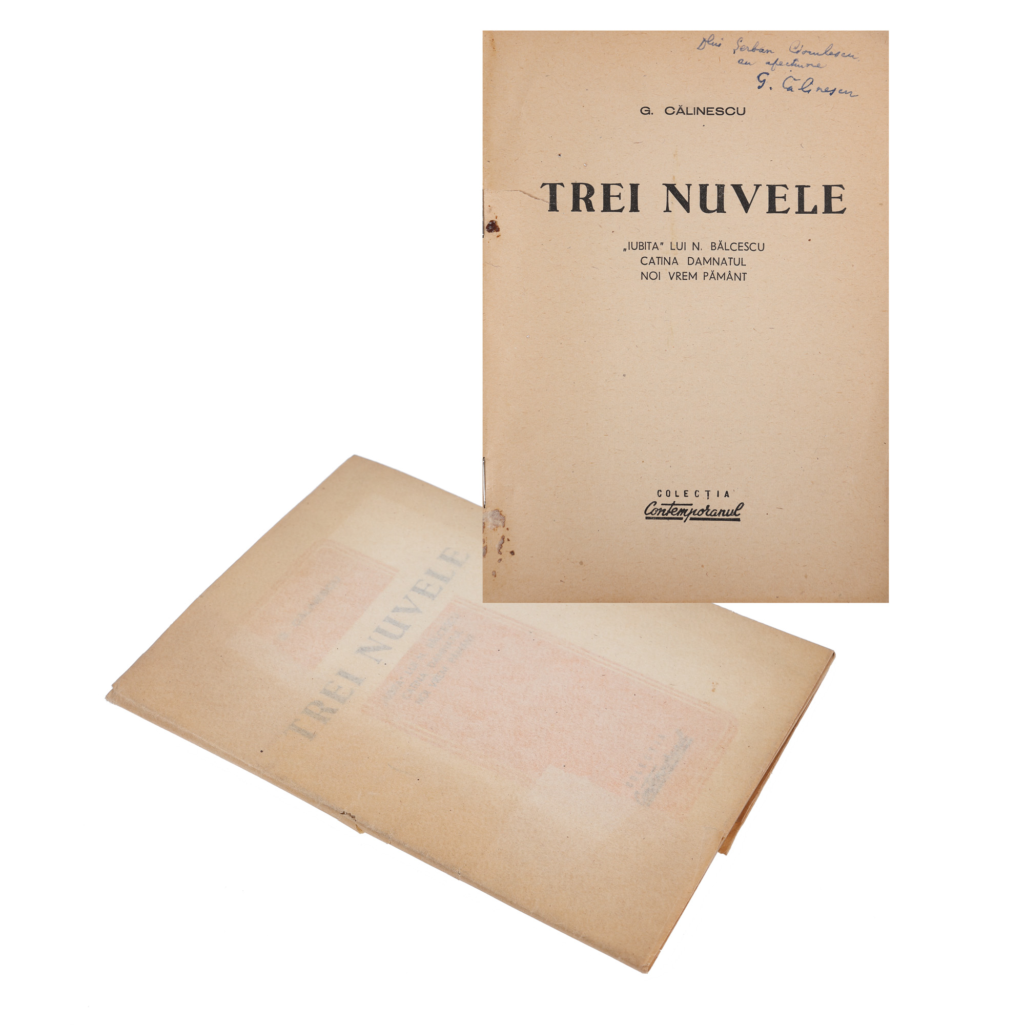 98. ”Trei nuvele”, de George Călinescu, București, cu dedicația autorului către Șerban Cioculescu, provine din colecția criticului literar Șerban Cioculescu