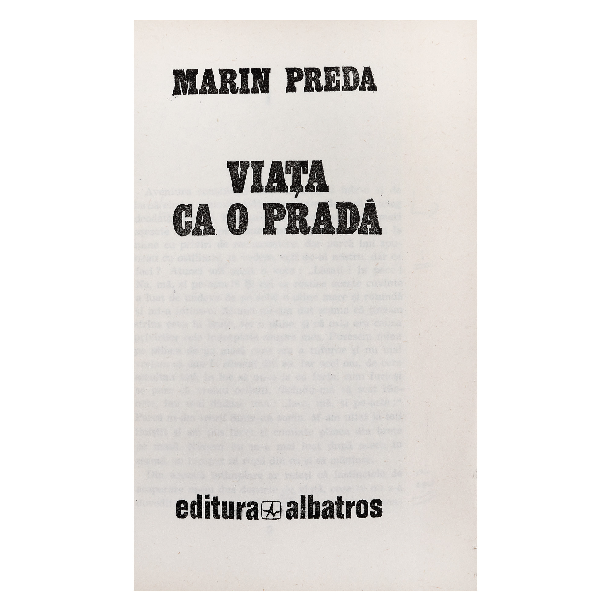 154. "Viața ca o pradă", de Marin Preda, ediție princeps, București, 1977, provine din colecția criticului literar Șerban Cioculescu