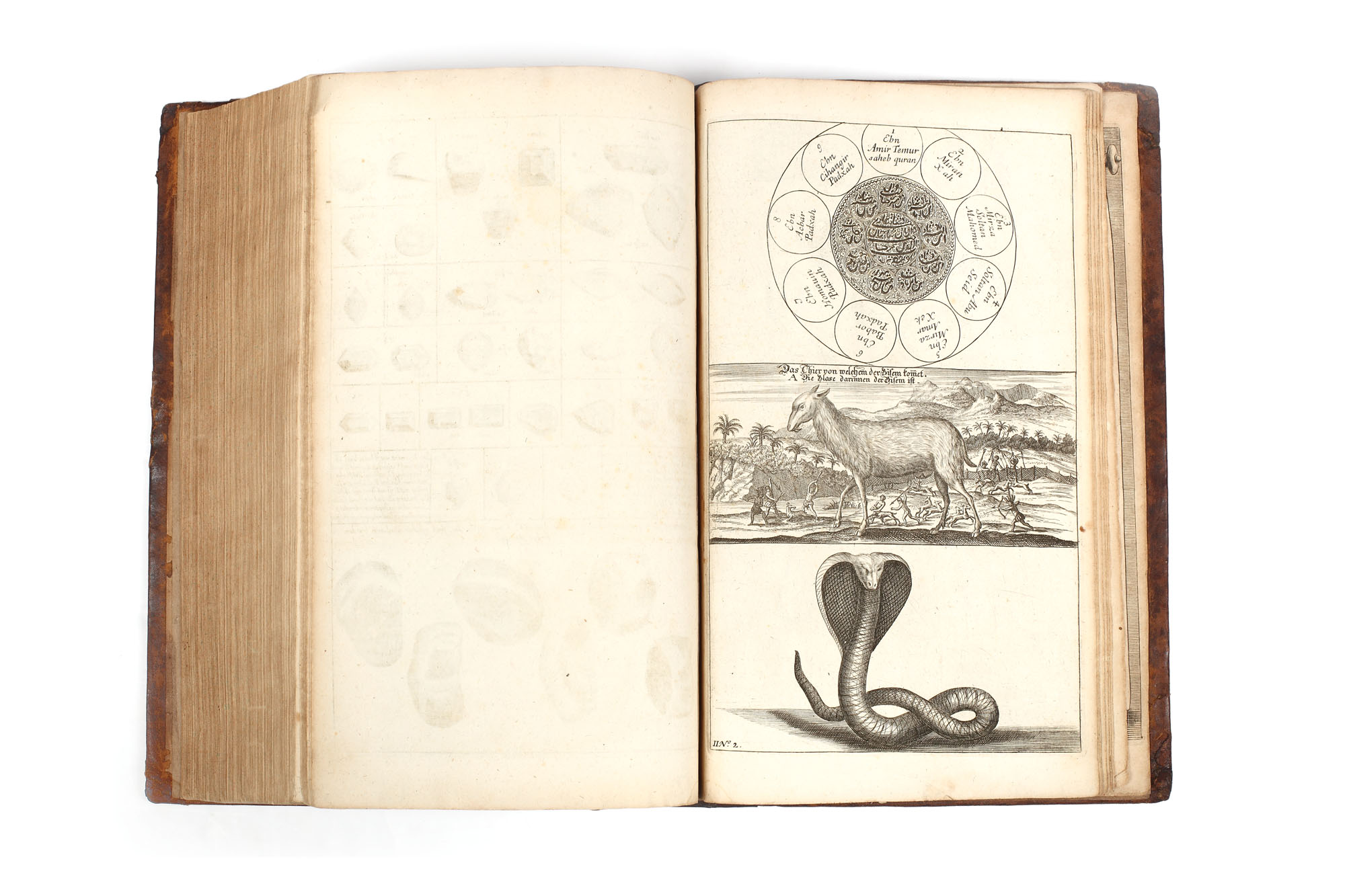 693. "Cele şase călătorii ale lui John Baptista Tavernier: Baron de Aubonne", de Jean-Baptiste Tavernier, ediţia în limba germană, Geneva, 1681, piesă extrem de rară