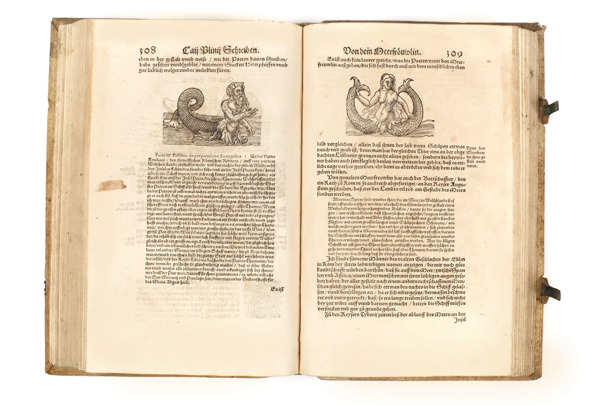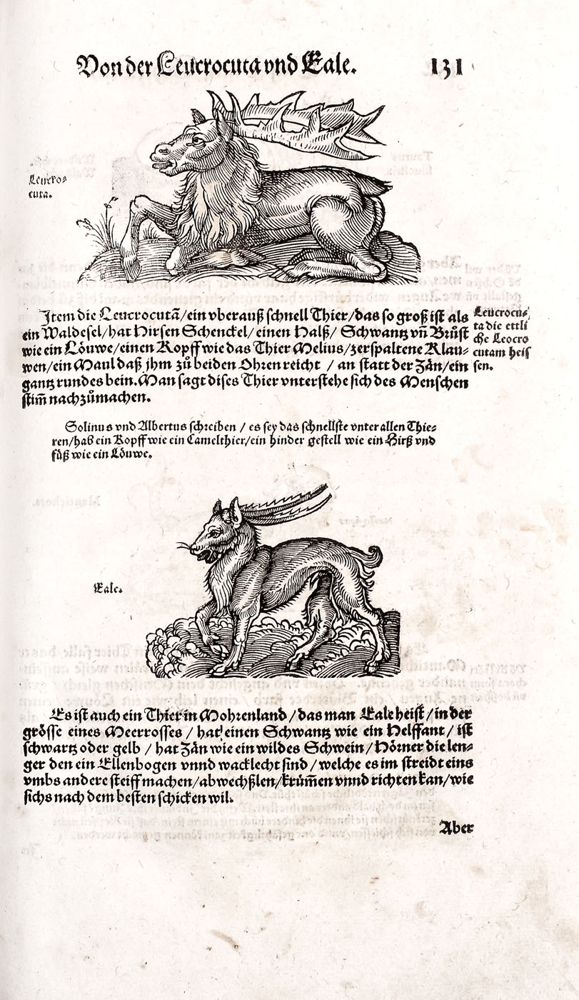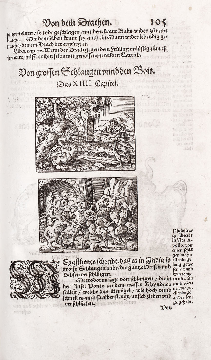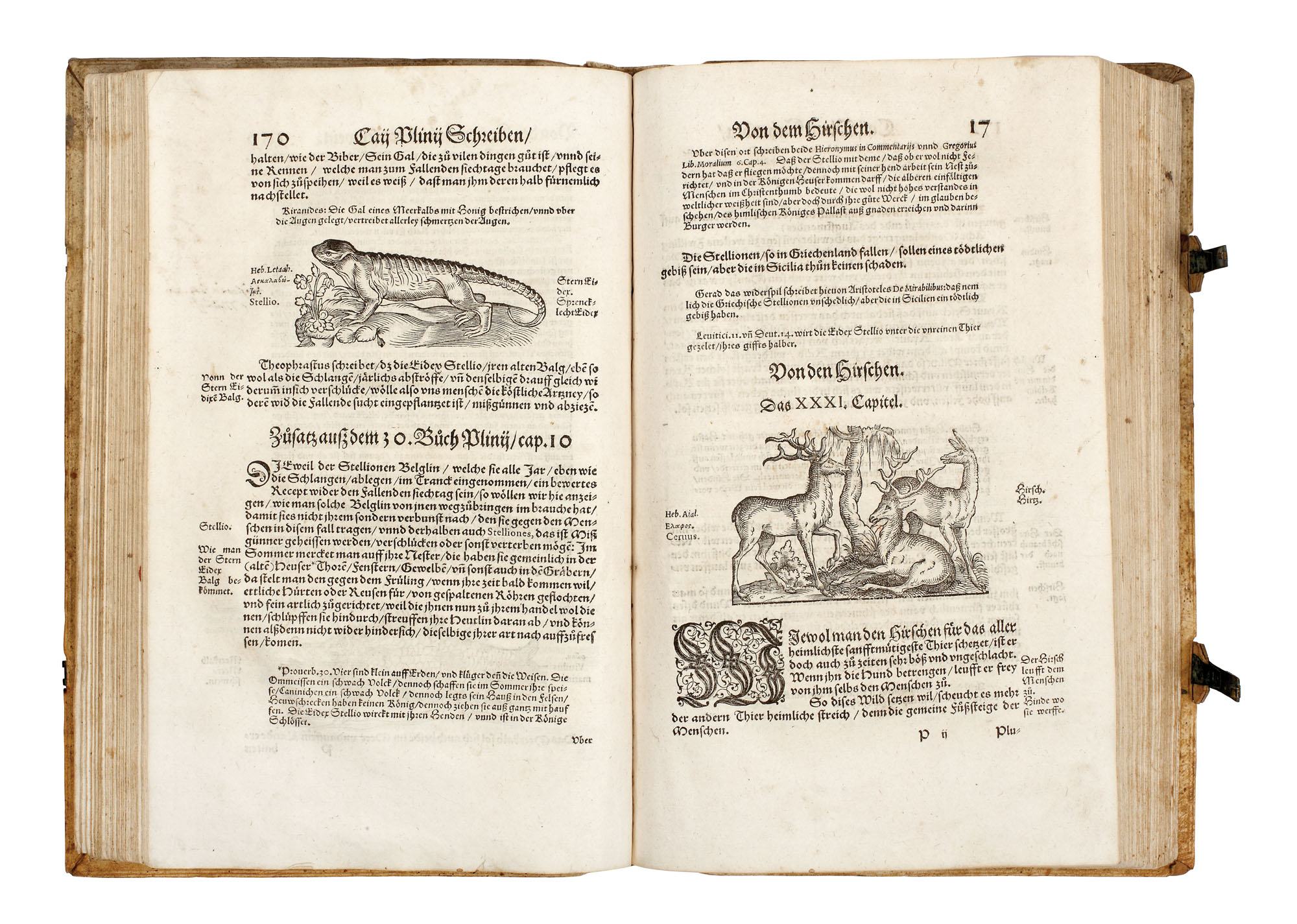Piesă bibliofilă excepţională, de colecţie, ediţia 1565, prima ediţie germană, a doua fiind publicată în 1584. Conţine 576 de gravuri realizate de gravori germani recunoscuţi, printre care se numără: Hans Weiditz, Virgil Solis şi Jost Amman. Lucrare importantă a lui Plinius cel Bătrân, "Istoria Naturală", a devenit model pentru enciclopedii şi manuale şcolare pentru mai bine de două milenii. Piesa de faţă a fost tradusă în germană de Heyden dezbătând în profunzime subiecte precum antropologia, anatomia şi zoologia. Volumul devine de asemenea un important manual de pescuit şi vânătoare, dar cuprinde şi o parte dedicată şoimăriei. Lucrarea de faţă cuprinde peste 200 de gravuri surprinzând creaturi fantastice printre care se numără şi celebrele reprezentări a sirenei şi a tritonului la paginile 308-309. Volum de 494 pagini, în folio, cu numeroase ilustraţii, legătură in pergament pe lemn, chenare la rece, cotor restaurat, chiotoare de dată recentă. Blocul cărţii în stare foarte bună.