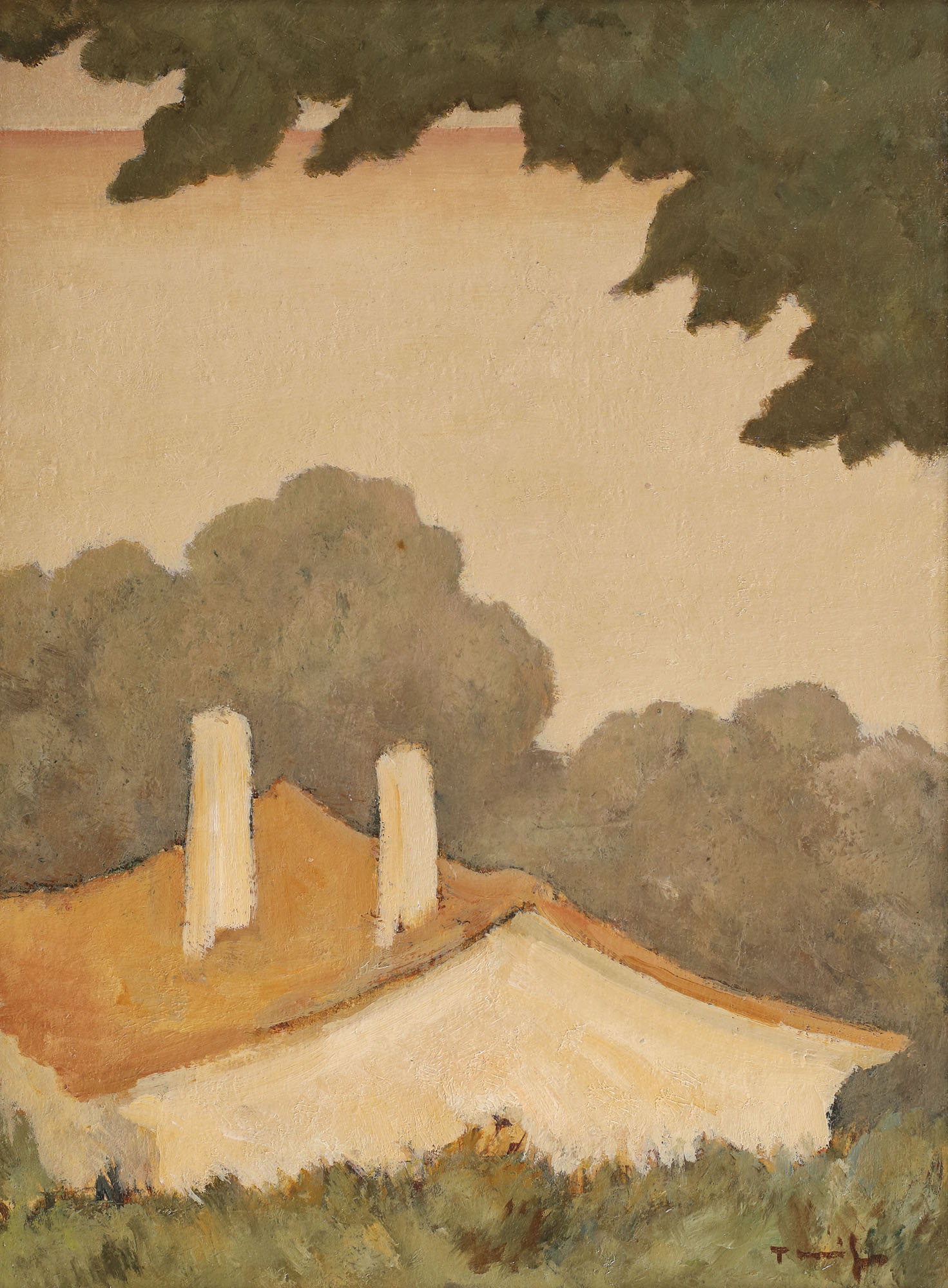 semnat dreapta jos, cu brun, "Tonitza"