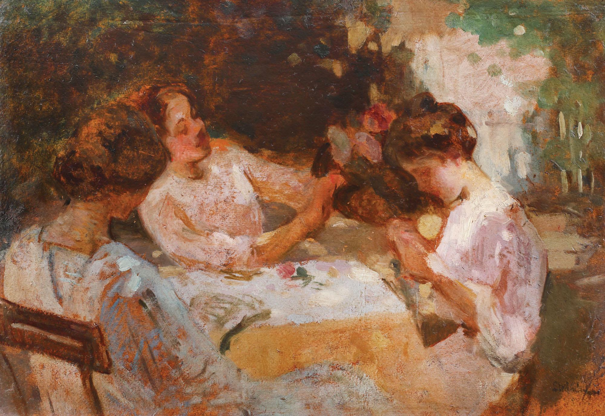 După desprinderea de influența profundă pe care a resimțit-o în urma contactului cu pictura lui Nicolae Grigorescu, Ipolit Strâmbu devine în a doua parte a carierei un artist interesat de impresionism, de efectele de lumină, de culoare, dar mai ales de subiecte boeme, ale căror subiect a fost exclusiv femeia. După 1912-1913, când sunt pictate ultimele subiecte campestre, Strâmbu se îndreaptă spre universul intim orășenesc, în grădinile private și pline de farmec ale Bucureștiului. Mereu înconjurat de modele feminine, compozițiile lui Strâmbu descriu un univers suav, de dolce far niente, al unei dupăamieze de vară trăită în lumina caldă a unei grădini ascunse.