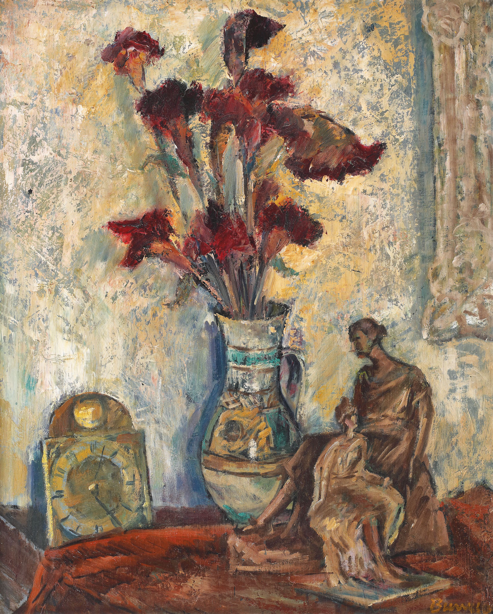 192. Natură statică cu flori și statuete (Oscar Han)