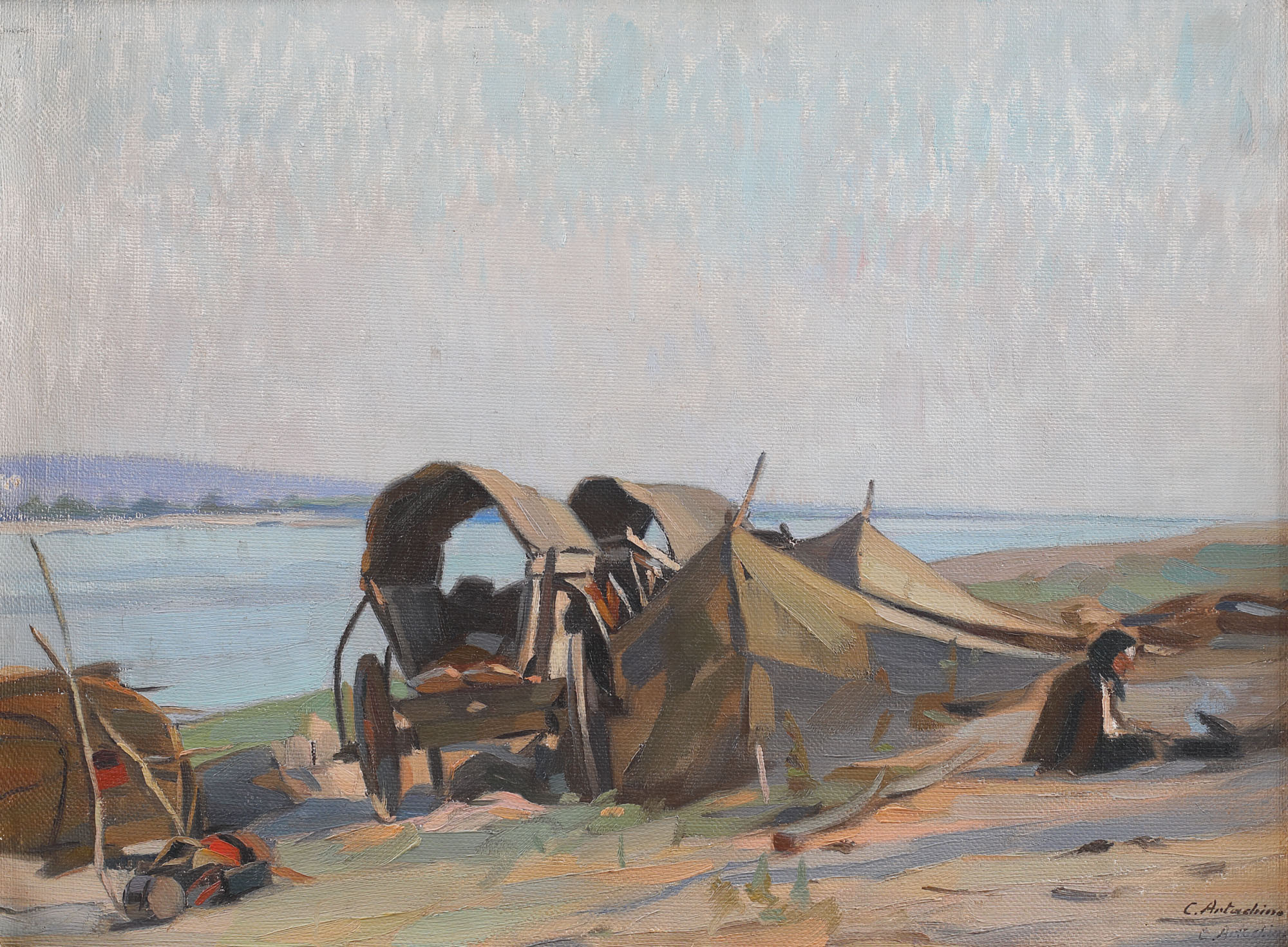 semnat de două ori dreapta jos, cu negru, "C. Artachino"