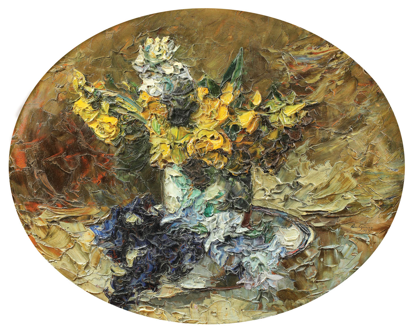 semnat și datat lateral dreapta, cu negru, "Bulgăraș, 1923"