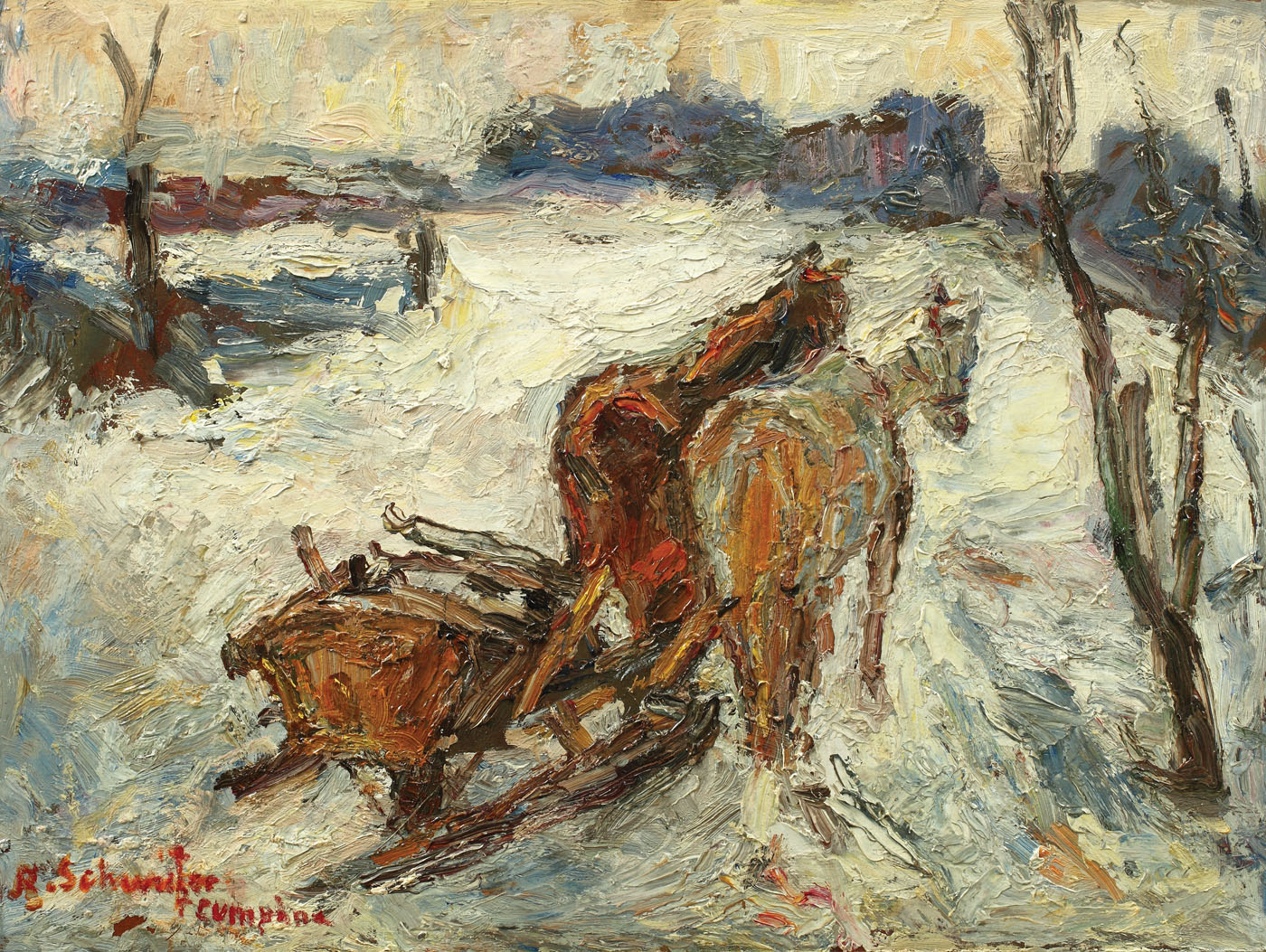 semnat stânga jos, cu roşu, "R. Schweitzer Cumpăna"