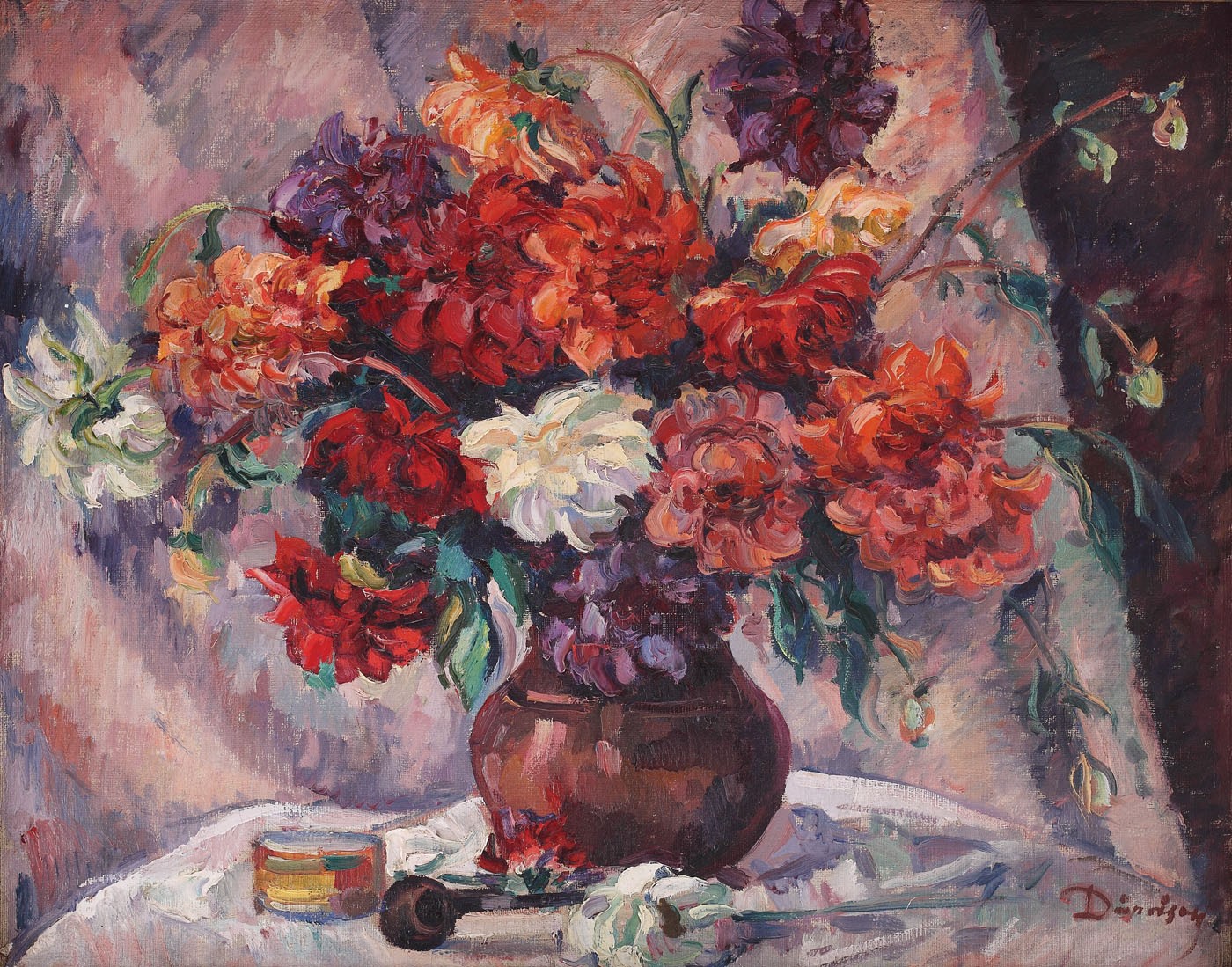 123. Natură statică cu dalii și pipă [mijlocul anilor '30]