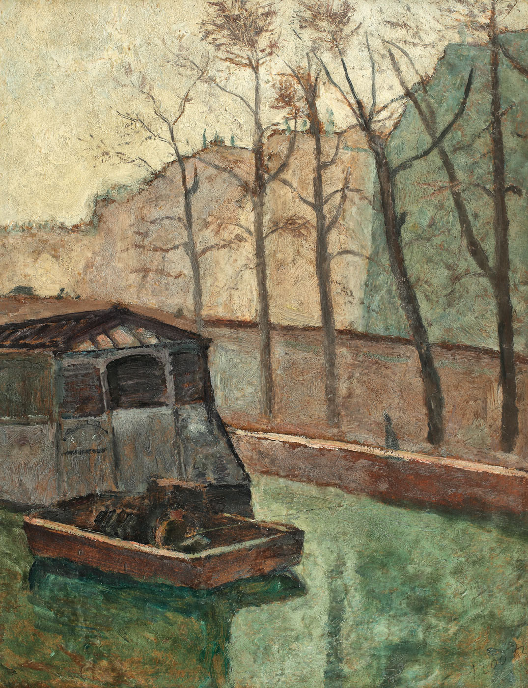 În maniera prin care îl regăsim în majoritatea uleiurilor văzute spre Sena, Theodor Pallady alege un punct central al uleiului, căruia îi oferă calitatea cromatică și plastică cuvenită. Sena este văzută în tentă opacă, în gradații neutre ale verdelui și griul reflexiei în apă a vegetației și a cerului înnorat. Desenul nu este exagerat, forma fiind modelată în culoarea parcimonios întinsă pe suprafețe destul de extinse ale cartonului suport, iar restul compoziției este construită în perspectivă trunchiată, depărtarea fiind rareori interesantă pentru Pallady, căci oferea o notă mult prea lirică caracterului final.