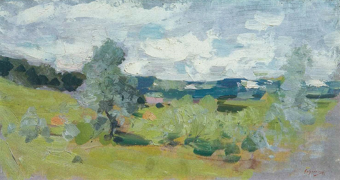Opera lui Nicolae Grigorescu din preajma lui 1900 încă trezește dispute în legătură cu adevărata sursă a imaginarului modelat - și aici nu ne referim la inspirație, ci la acțiunea conștientă de a interpreta natura într-o anumită manieră, tehnică, abordare. Fie că Grigorescu e racordat la curentele contemporane lui și trebuie să evidențiem întâietatea Art-Nouveau-ului la 1900, fie că problemele de vedere au fost adevărata cauză a “perioadei albe”, răspunsul este cel mai probabil la mijloc. Calitatea primară a operei dezvoltate în ultimii 10 ani de creație ține de viziune, o viziune inconfundabilă ce s-a tradus prin contactul nemijlocit cu realitatea imediată, filtrată (sau nu) prin sensibilitatea lirică atât de pasională. Peisajul a fost cu adevărat câștigat atunci când Nicolae Grigorescu a capacitat să racordeze stilul la acea viziune, prin propria-i opinie despre Impresionism, valoarea lucrurilor și estetica coordonatoare. Câștigurile acestei ultime perioade, în special în maniera picturală, au constat în valorația oferită întregii compoziții, prin capacitatea artistului de a picta întregul, dar și fracțiunile, cu aceeași însemnătate și calitate a universului luminos. Lucrarea de faţa aparţine unei serii de peisaje - variaţii pe aceeeaşi temă, imagini ale zonei subcarpatice din preajma Câmpinei şi a Posadei - executate în notațiile cele mai subtile, pe acele paneluri de lemn indispensabile atât în pictarea în fața motivului, cât și în alegerea vedutelor cele mai grăitoare.