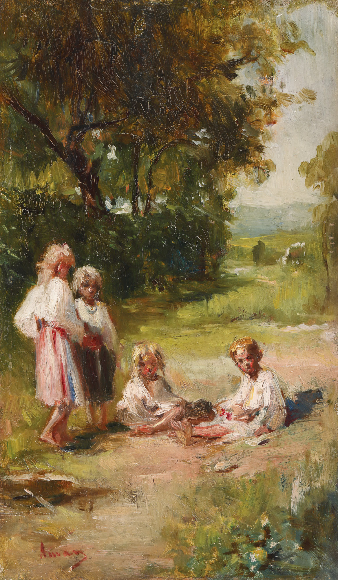 Printre temele abordate de artistul Aman regăsim subiectele istorice, portretele, scenele orientale, precum și subiectele inspirate din viața omului din popor, cele din urmă având să producă în pictura românească o nouă atenție asupra vieții rurale. Pe lângă pitorescul portului național, pe care îl evidențiază ca un maestru, artistul caută să lege personajele de rostul muncii și al traiului de la sat, relevându-se ca un interpret fidel al epocii sale. Redând scene, cât și tipuri din mediul rural, operele sale vor fi străbătute, pe lângă idilicul vizionar, de puternice accente critice. Astfel, prezentarea traiului greu vor fi reprezentate în opere precum: „Adunați la mămăligă”, „Popas la munca câmpului”, „Ursarul”, „În fața casei”, „Țăran cu căciula în mână”, „Copii cu vitele” ș.a. (GM)