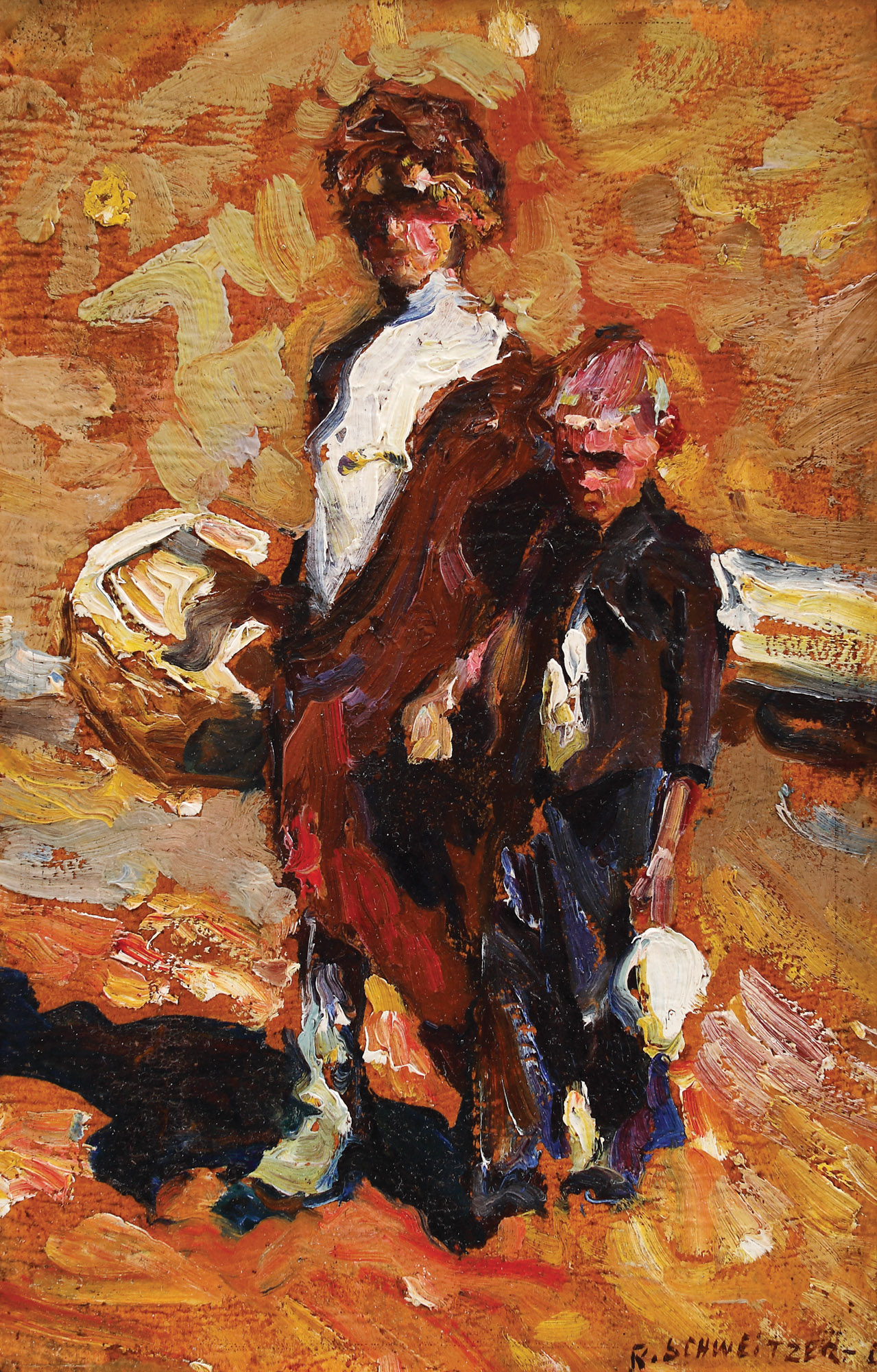 semnat dreapta jos, cu brun, ”R. SCHWEITZER-C.”