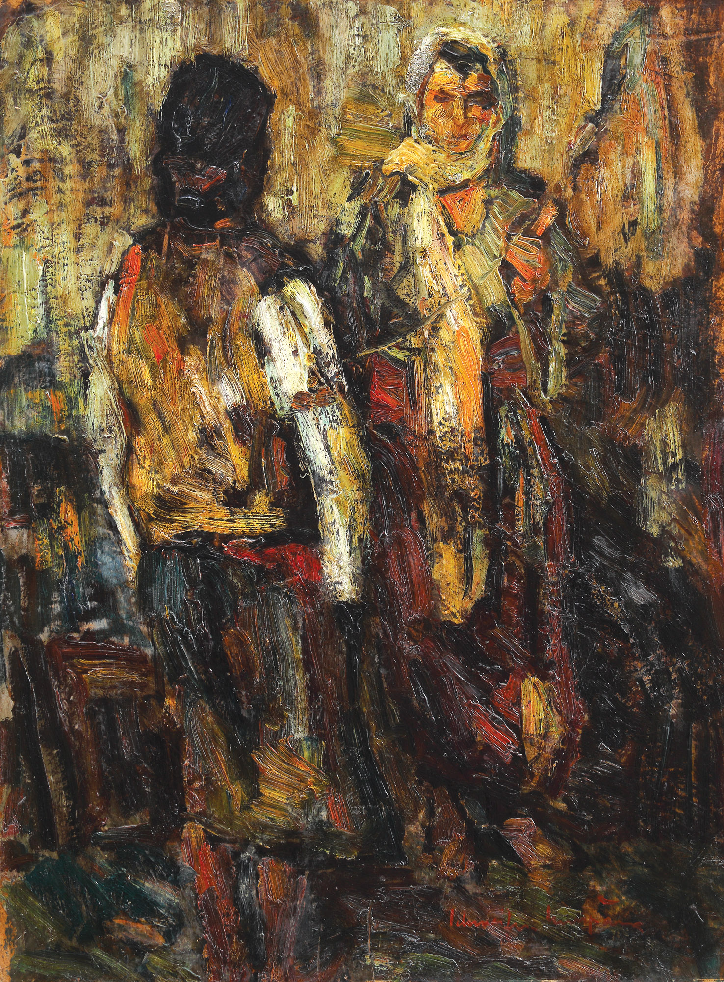 semnat dreapta jos, cu brun, "Schweitzer-Cumpăna"