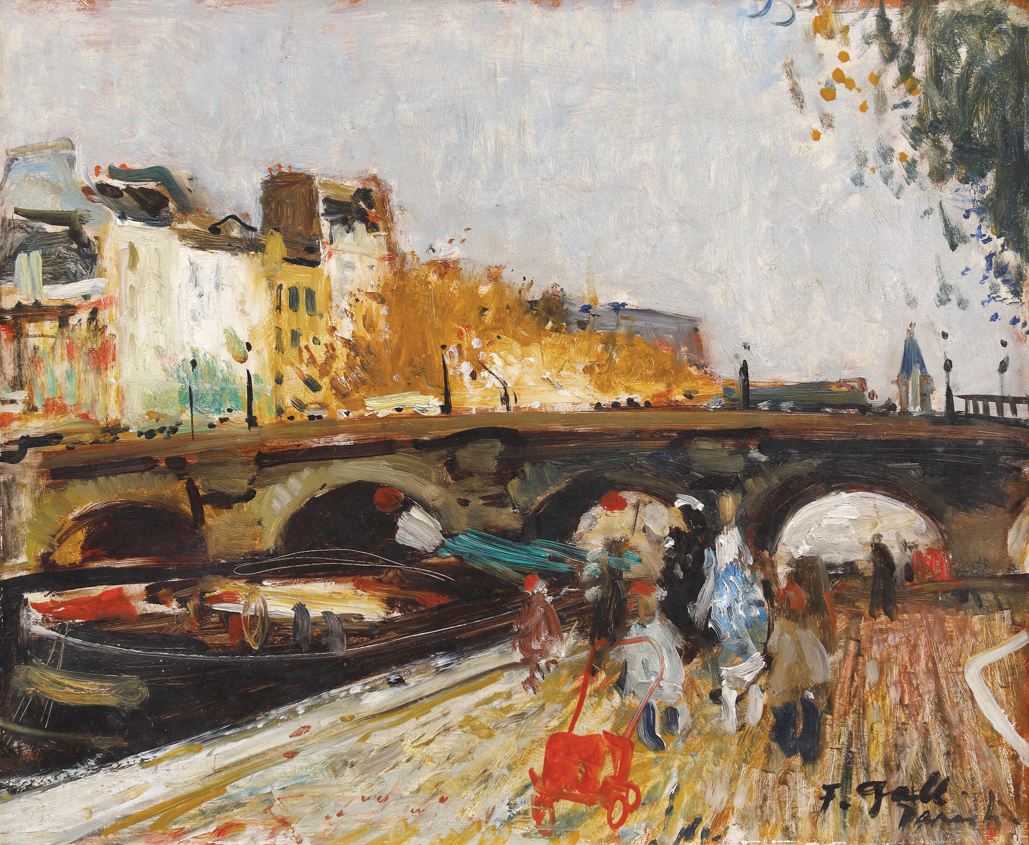 semnat, localizat și datat dreapta jos, cu negru, "F. gall, Paris, (19)47"