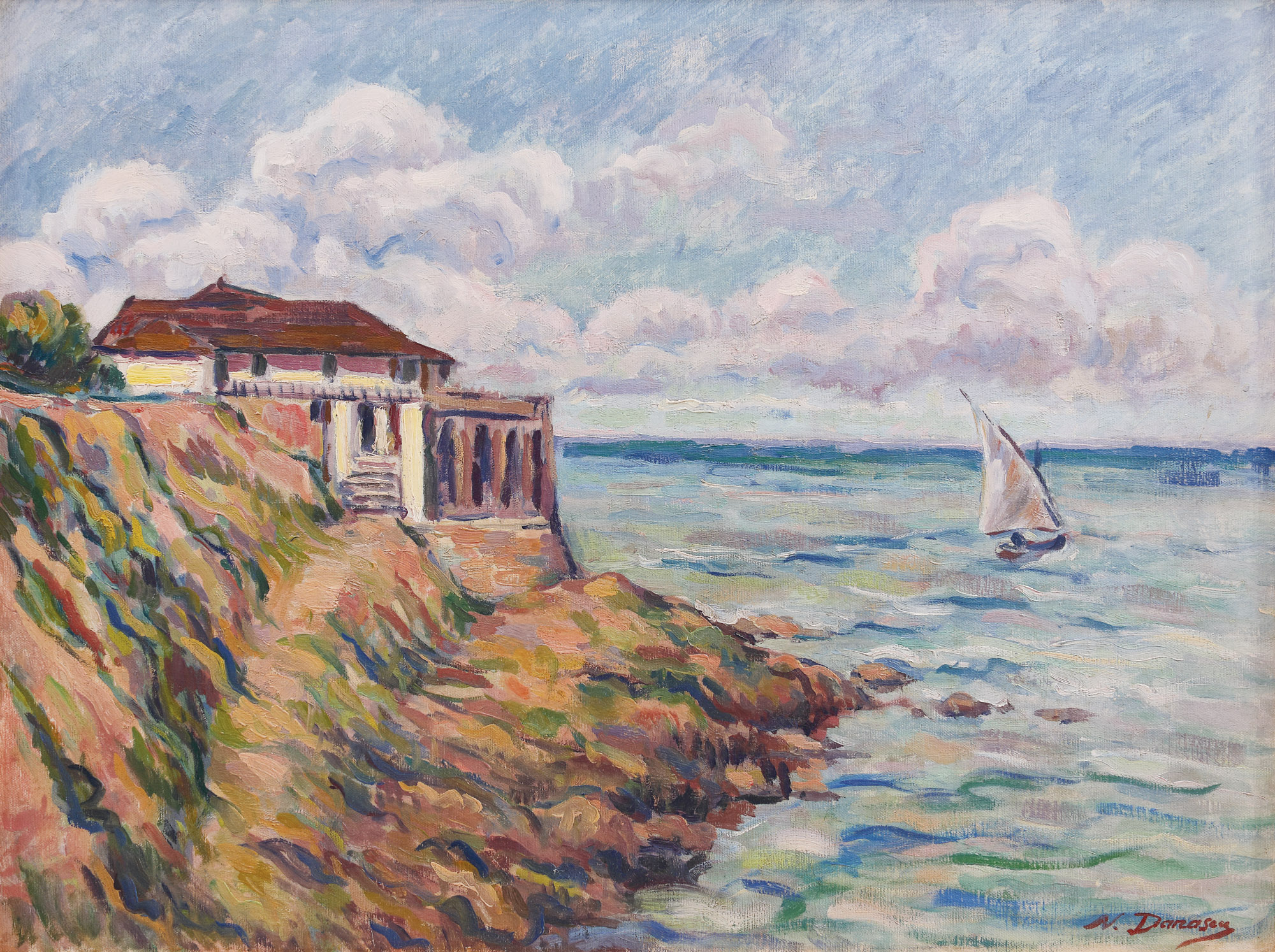 Atracția lui Nicolae Dărăscu pentru peisajul marin a fost direct legată de interesul acestuia față de stilul impresionist, stil care i-a definit cariera. Încă de la începutul carierei, Dărăscu s-a arătat interesat de lecțiile impresionismului și neo-impresionismului, atât din pânzele lui Monet, cât mai ales din operele lui Signac sau Seurat. Astfel, pe parcursul perioadei petrecute în golfurile din preajma Saint-Tropez-ului sau a Grimaud-ului, între 1908 și 1913/1914, compoziția dărăsciană a progresat, tușă cu tușă, spre o creație postimpresionistă a unui colorist desăvârșit. Prin voluptatea picturii în stil (neo)impresionist, coordonată și de atracția pentru mediul acvatic și caracterizată de divizionismul cromatic, pictorul va realiza un ciclu de marine extrem de individualizat.
