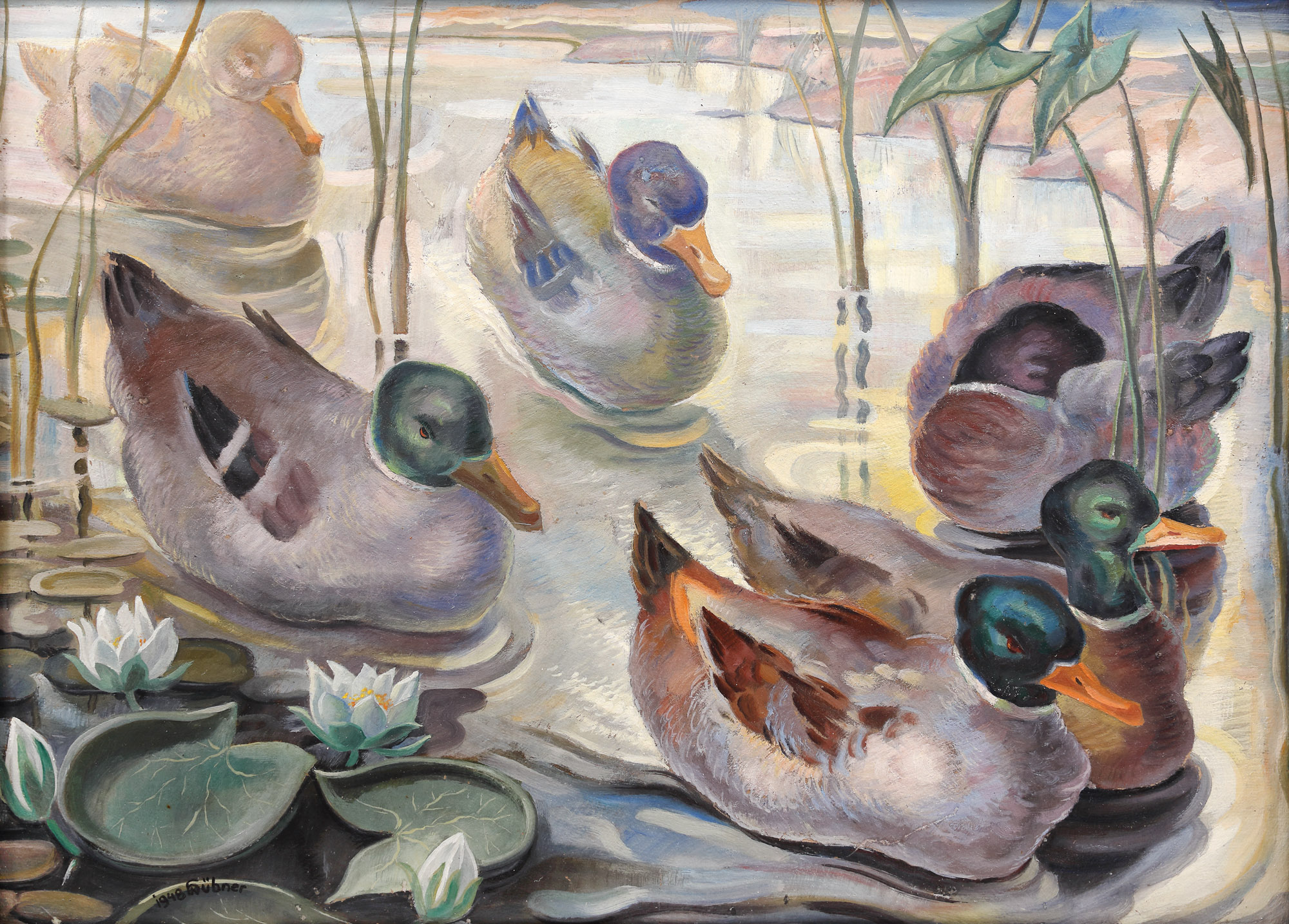 semnat și datat stânga jos, cu negru, "K. Hübner, 1948"