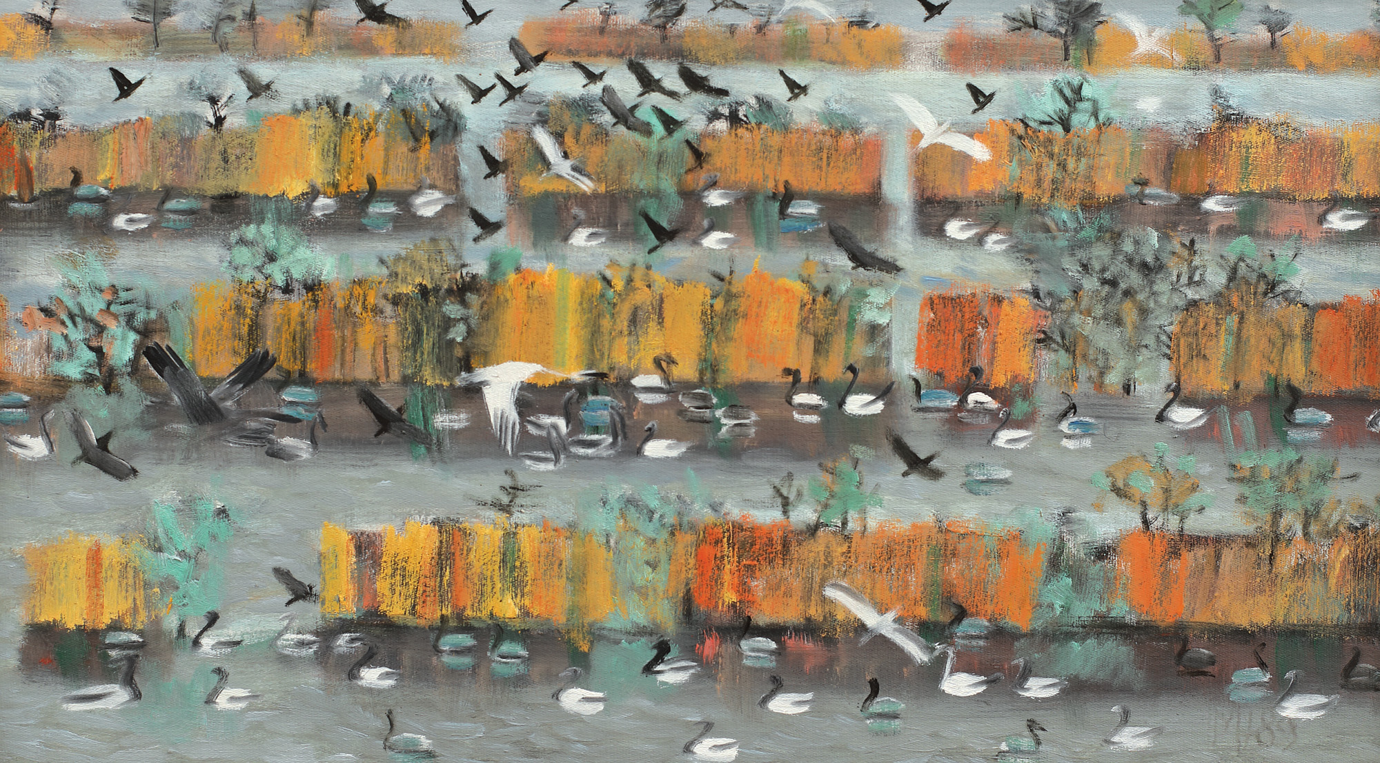 semnat și datat dreapta jos, cu gri ”MV, (19)89”
