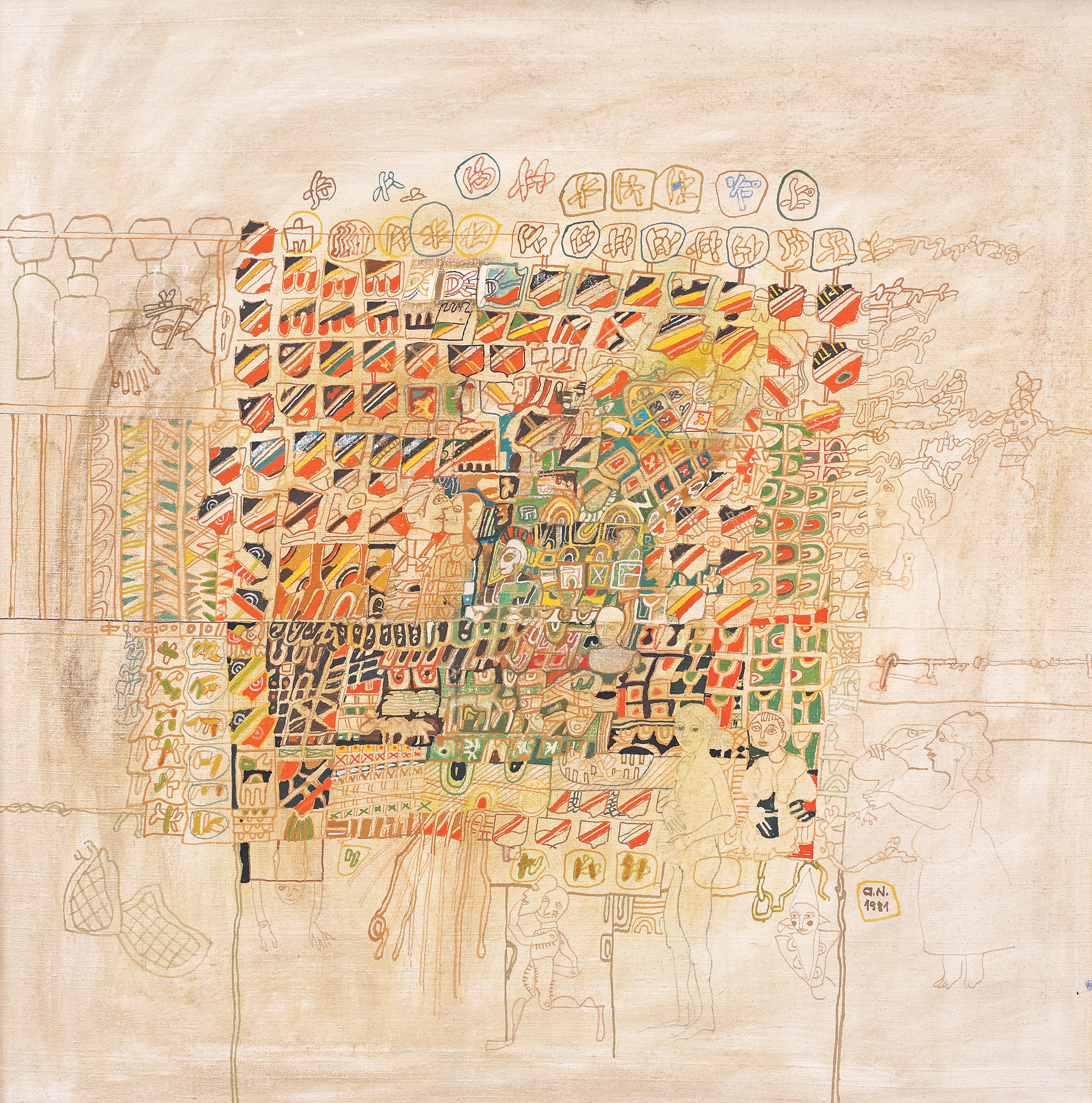 semnat și datat dreapta jos, cu brun, "G.N., 1981"
