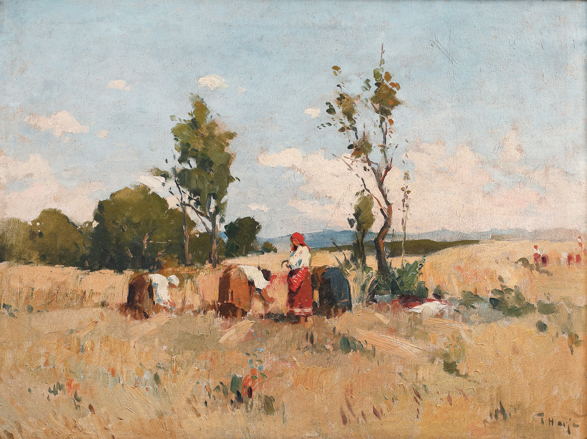 semnat dreapta jos, cu gri, ”T. Harșia"