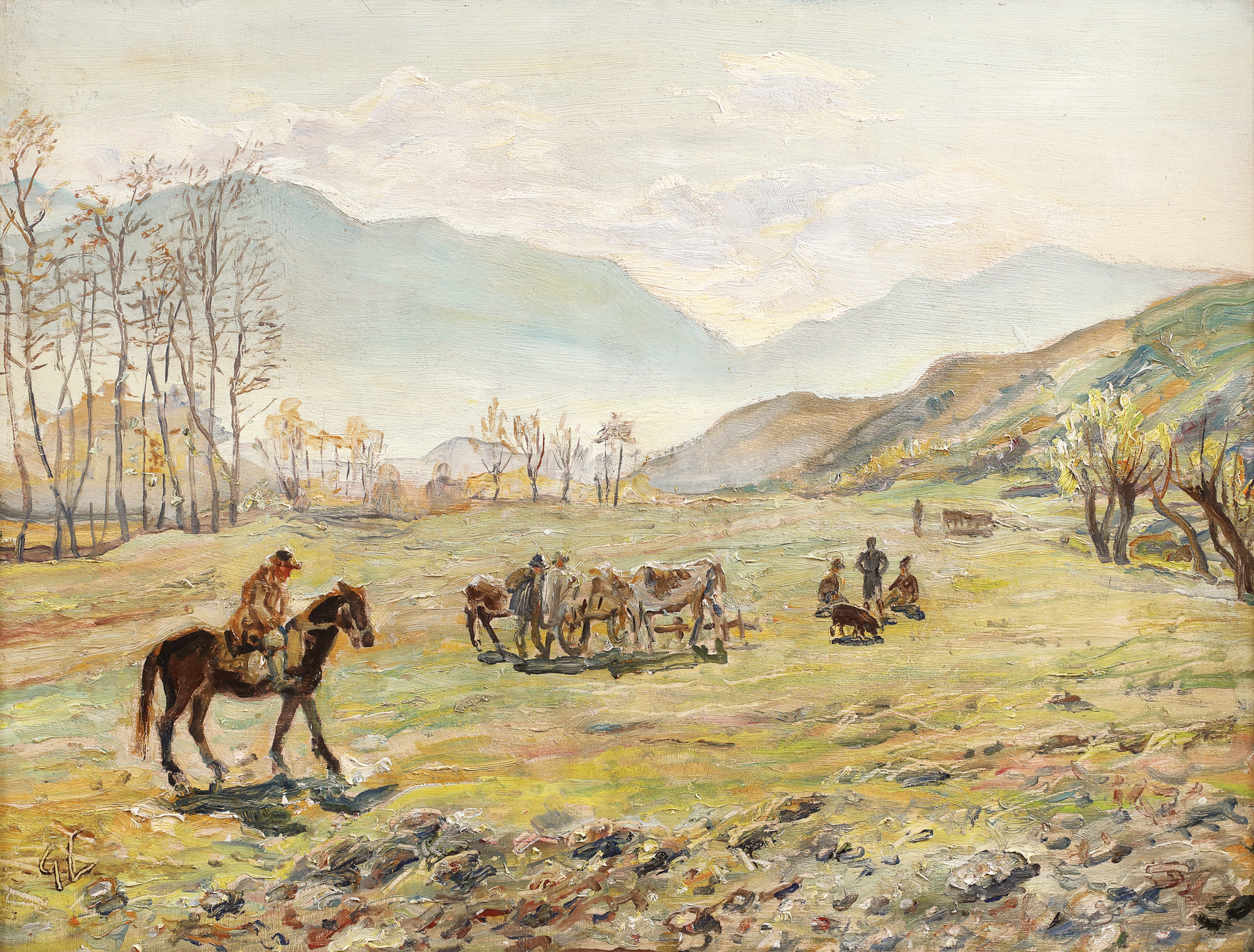 semnat stânga jos, în monogramă, în pastă, ”GL”