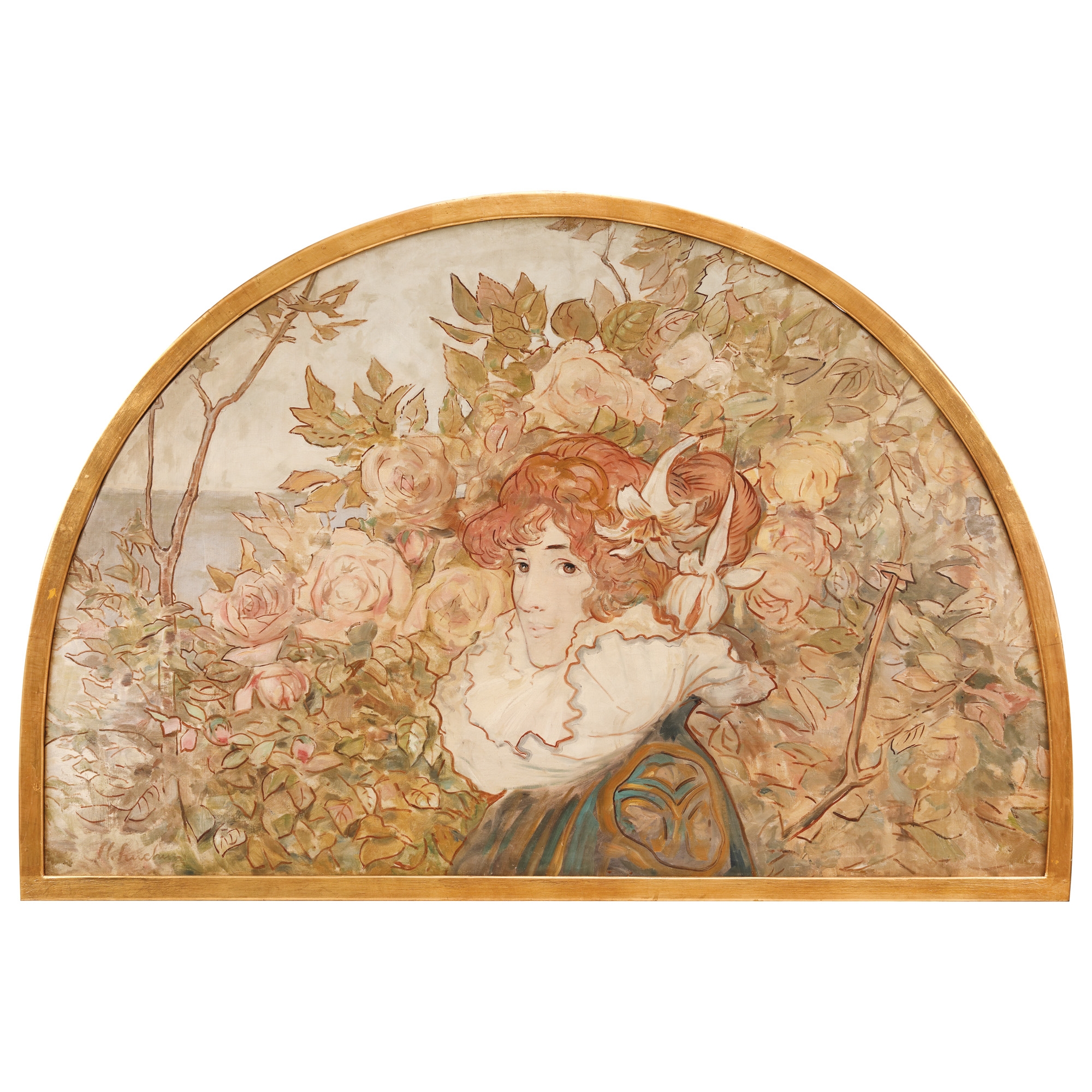 Elegantul traseu al liniilor sinuoase ca și încununarea ansamblului printr-un arc de cerc imprimă lucrării de față un esențial efect decorativ. În centrul compoziției, privind spre noi, o grațioasă figură feminină se ivește din faldurile unui guler elegant din mătăsuri albe, integrat precum un element floral, masei vegetale ce inundă imaginea. Coafura generos modelată a personajului devine motiv decorativ în sine atât prin ductul liniei cât și prin prezența simbolică a celor doi crini albi. Toate aceste aspecte emanând eleganță și rafinament se reunesc dând lucrării de față trăsăturile stilului Art Nouveau ce-și făcuse apariția către finele veacului al XIX-lea, descinzând din sensibilitatea simbolistă. Marcând artele plastice și decorative (mobilier, ceramică, sticlă etc) în lumea întreagă, în jurul anului 1900, stilul Art Nouveau cunoscut sub diversele lui apelațiuni - Art 1900, Modern Style, Jugendstil, Lo Stile Floreale - a reprezentat atunci vocabularul artistic nou, formula originală, mult așteptată la trecerea pragului în secolul al XX-lea. Lucrarea de față, o comandă concepută și realizată de Luchian la 1901, face parte dintr-o suită de panouri decorative1 - patru sau poate mai multe, reprezentând alegorii feminine (anotimpurile?) - destinate, se pare, să decoreze interioarele casei din strada Colței nr. 56 a avocatului și omului politic liberal, Victor Antonescu (1871, Antonești/Teleorman -1947, București)2. Comentariul istoricului de artă Theodor Enescu privind aceste panouri (inclusiv cel propus acum publicului) pune în evidență măiestria lui Luchian în conceperea decorativă a suprafetelor „ știința sa de a compune în ansambluri decorative grațioase, tipicele gracile figuri feminine ale sfârșitului de secol - cu pieptenăturile lor sofisticate, cu costumele pline de dantele, cu paftalele, bijuteriile și podoabele lor florale, cu convenționalele gesturi cochete - pe un fundal de tufișuri frunzoase, cu flori exuberante și o combinație scenografică de misterioase arhitecturi medievale.”3 Două dintre panourile în discuție aparțin Muzeului Național de Artă al României, cel intitulat Primăvara (inv.10577/104185) aflându-se în expunerea permanentă actuală a Galeriei Naționale și constituind astăzi marca de noblețe a primului muzeu de artă al țării.4 Luchian a elaborat pentru lucrările definitive, variante pregătitoare5, desene acuarelate (unele pe hârtie, unul pe mătase), ce trimit la rafinamentul graficii extrem-orientale - realizate cu o mare finețe a ductului liniei și a transparențelor culorilor de apă. Dintre aceste schițe, acuarela pe mătase (213 x 292 mm., Biblioteca Academiei Române, inv. 3486) este pasul pregătitor pentru panoul nostru, foarte aproape de lucrarea Toamna. În arta și în arhitectura românească, operele Art Nouveau propriu-zise nu sunt numeroase, dar ecouri ale acestei viziuni se întâlnesc adesea în jur de 1900, în special în artele grafice, în pictură, împletindu-se cu starea de spirit din arta simbolistă (se întâmplă în cazul textelor și a ilustrațiilor revistei Ileana între ai cărei fondatori și colaboratori se numără Ștefan Luchian). Reapărute în conștiinta publică occidentală către 1960-1970, după o lungă ignorare în timp, aprecierea amatorilor de artă și interesul istoricilor de artă pentru Art Nouveau și pentru simbolism renaște începând cu anii1960-1970. Bibliografia românească referitoare la opera lui Luchian înregistrează aceste schimbări de registru datorate atât modificărilor de gust cât și de perspectivă ideologică (Comarnescu, 1955; Enescu, 1974). Dată fiind scurta existență a momentului stilistic Art Nouveau în opera lui Luchian, în raport cu linia postimpresionistă ce-i este definitorie, ne putem întreba a cui va fi fost inițial, opțiunea estetică a lui Luchian sau a lui Victor Antonescu, atunci când a fost aleasă ca sursă de inspirație pentru panouri, grafica de tip Art Noveau a artistului simbolist Georges de Feure (1868-1943), franco-olandez contemporan cu Luchian, prețuit și cunoscut autor de afișe și decorator în Parisul finelui de veac. Semnalată de Paul Constantin (1972), amintită de Theodor Enescu (1974), această apropiere a fost analizată prin comparații detaliate între operele similare Luchian-de Feure, de către tinerii istorici de artă Monica Enache (2011) și Eduard Andrei (2011). Lucrările lui Georges de Feure le găsim reproduse în paginile unor reviste pariziene ale anilor evocați, precum Le Figaro Illustré. După cum preciza Eduard Andrei (2011), „tabloul Primăvara și schițele celorlalte „anotimpuri” sunt replici aproape fidele ale unei serii de patru lucrări în guașă executate în 1899 de Georges de Feure […]. Tipogravate în 1900 la atelierul Goupil din Paris, ele au fost reproduse în luna februarie a aceluiași an - sub titlul generic Figură de femeie între flori - în revista Le Figaro Illustré”.6 Desigur că atât artistul cât și comanditarul au fost marcați de gustul pentru această viziune, dominantă în ultimul deceniu al secolul al XIX-lea, cand amândoi se aflau la studii la Paris și imaginile semnate de Georges de Feure circulau devenind ca o amprentă a epocii. În plus, periodicele franțuzești (ziarele curente și revistele de artă și decorațiuni ) soseau și erau citite cu regularitate în înalta societate bucureșteană. În ceea ce privește tematica acestor panouri, se cuvine relevată opinia Monicăi Enache care se îndoiește de titlurile Anotimpuri, plecând de la numele lucrărilor de Georges de Feure din numărul deja citat al revistei Le Figaro Illustré ( nr.119). Cercetătoarea semnalează imaginile articolului „La femme par le Feure” ce pun în relief prin titlurile lor, specific simboliste, „dualitatea personalității feminine”: Experiența, Viciul versus Inocența
