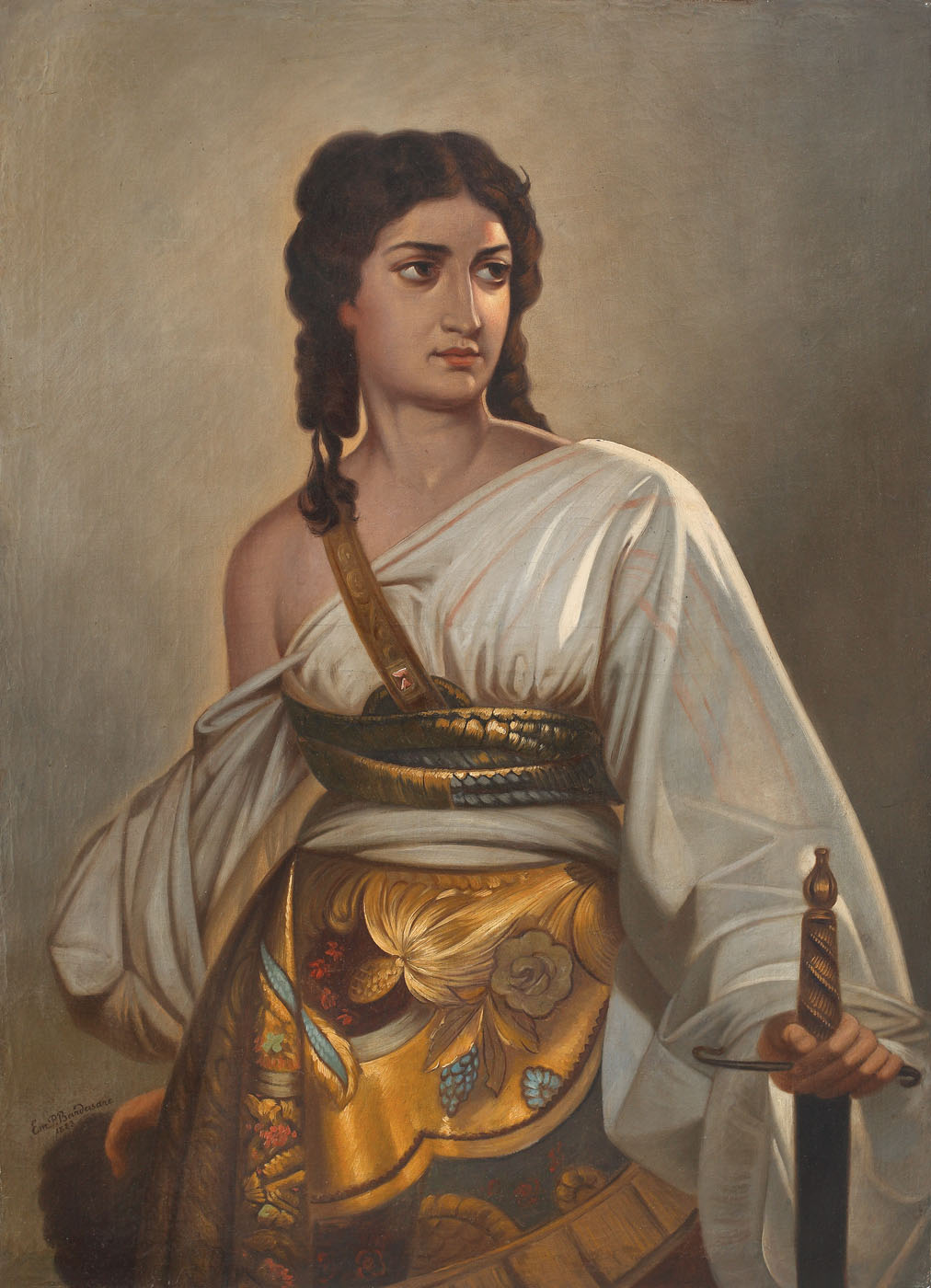 semnat și datat stânga jos, cu brun, "Em. P. Bardasare, 1883"