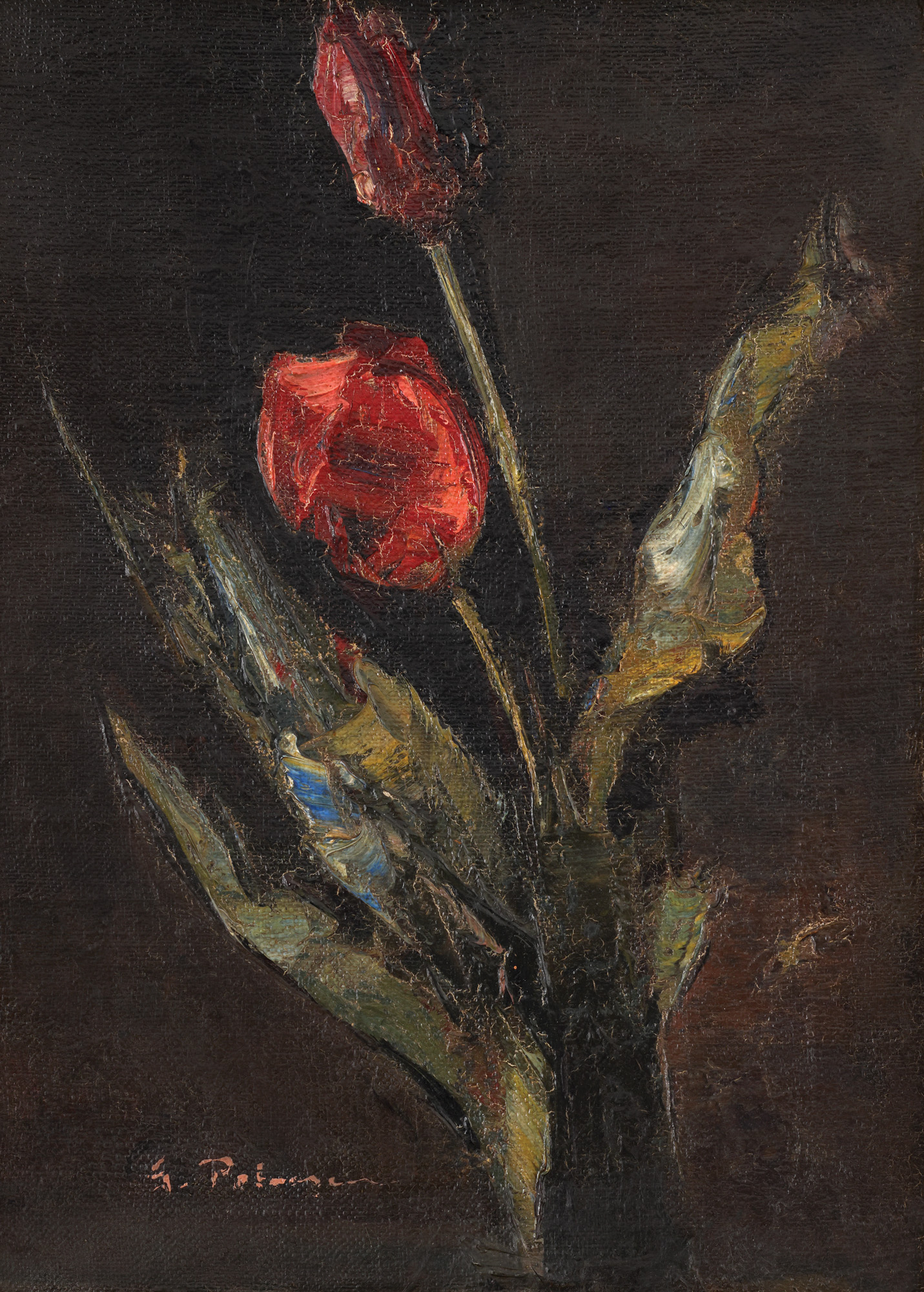 Elegiile florale ale lui Petrașcu vor căpăta statutul de veritabile spectacole picturale datorită manierei de realizare complet diferite față de aceea a lui Grigorescu, Luchian sau Andreescu. Se distinge prin forța de expresivitate realistă și aspectul auster al lucrărilor sale. Pasta suculentă, așezată atent cu vârful cuțitului transfigurează realitatea prin complexitatea și duritatea materiei folosite. Artistul se dovedește a fi un veritabil stăpân al tehnicii și inserează lumina în culoare, însă va învăța să stăpânească și tainele negrului, pe care le asimilează din opera lui Goya. Reprezentate frugal, în culori vii și puternice, lalele lui Petrașcu devin o consemnare viscerală a unei frânturi de natură așezată pe un fundal anorganic. Titular al unui caracter sensibil și prodigios, dar încrezător în forțele proprii, Gheorghe Petrașcu va abandona modelul copist promovat de predecesorii săi și se va bizui pe spontaneitatea execuției sale. Deținător al unui talent aparte, va fi remarcat de Nicolae Grigorescu și de G.D. Mirea și va ajunge, prin prisma vocației sale, să se dezvolte profesional în timpul călătoriilor de studii în străinătate. Debutează în fața publicului bucureștean în anul 1900, printr-o expoziție personală. Pictura pe care o propune artistul e mult mai brutală decât cea a înaintașilor săi. Petrașcu optează pentru o cromatică întunecată și pentru utlizarea contrastelor stridente. Evocă aspecte din natură prin coloritul său specific și nu se sfiește să folosească din abundență negrul, roșul sau verdele.