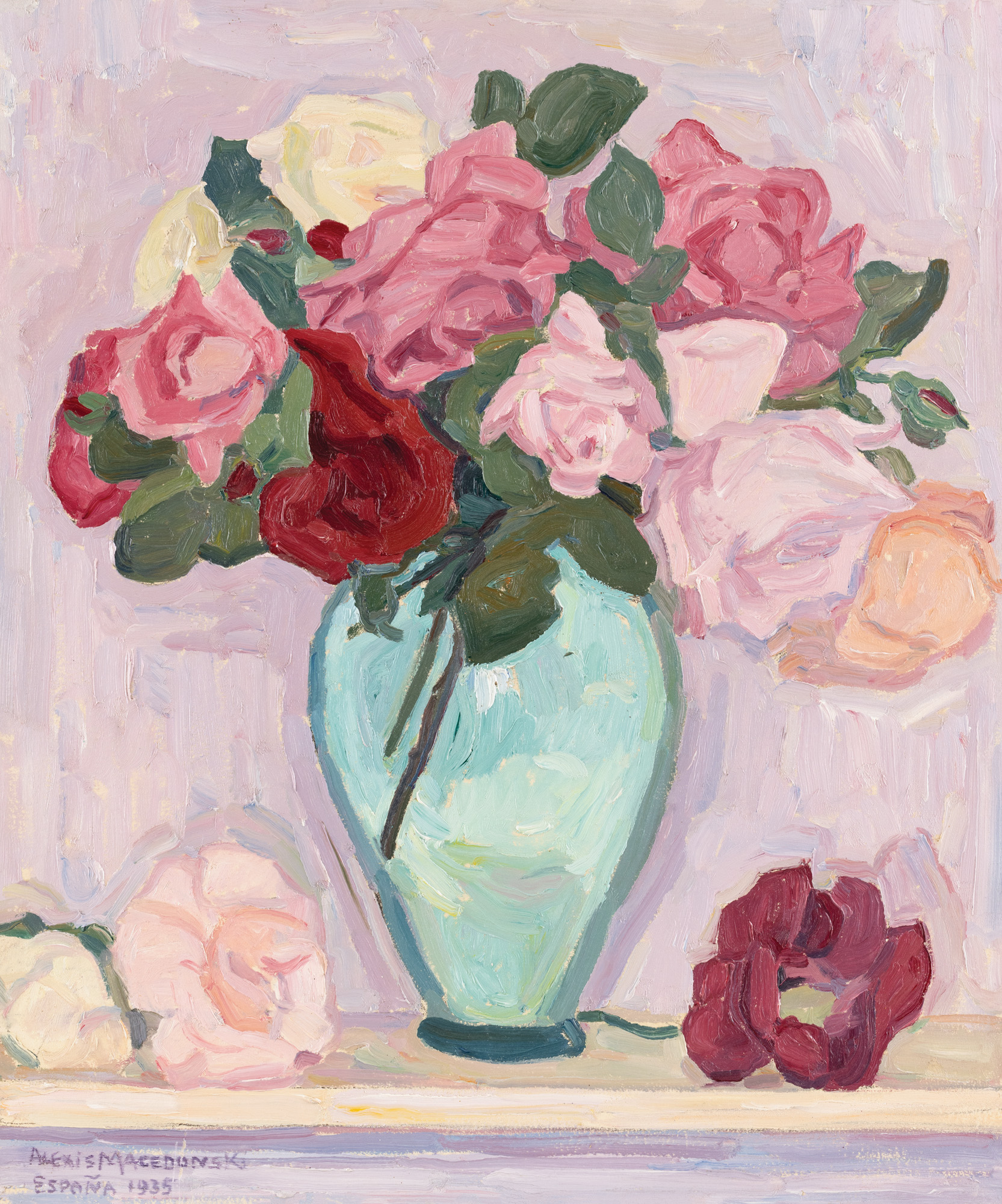 semnat, datat și localizat stânga jos, cu negru, ”Alexis Macedonski, Espana, 1935”