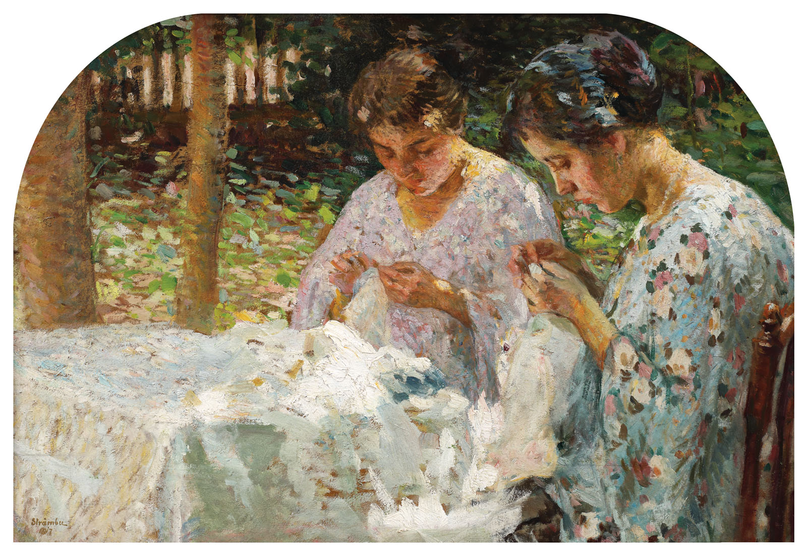 semnat și datat stânga jos, cu brun, "Strâmbu, 1917"