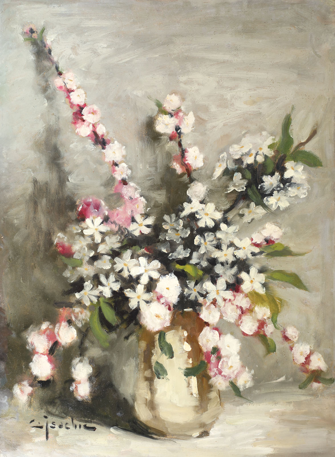 semnat stânga jos, cu negru, "C. Isachie"