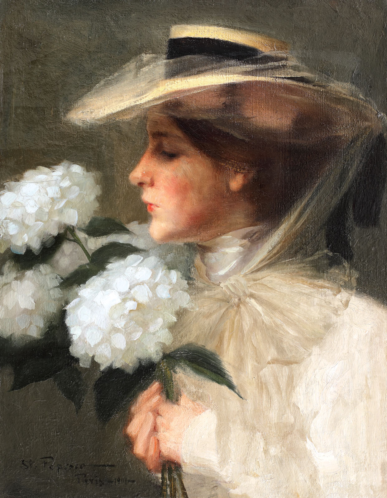 semnat, datat şi localizat stânga jos, cu negru, "St. Popesco, Paris, 1901"