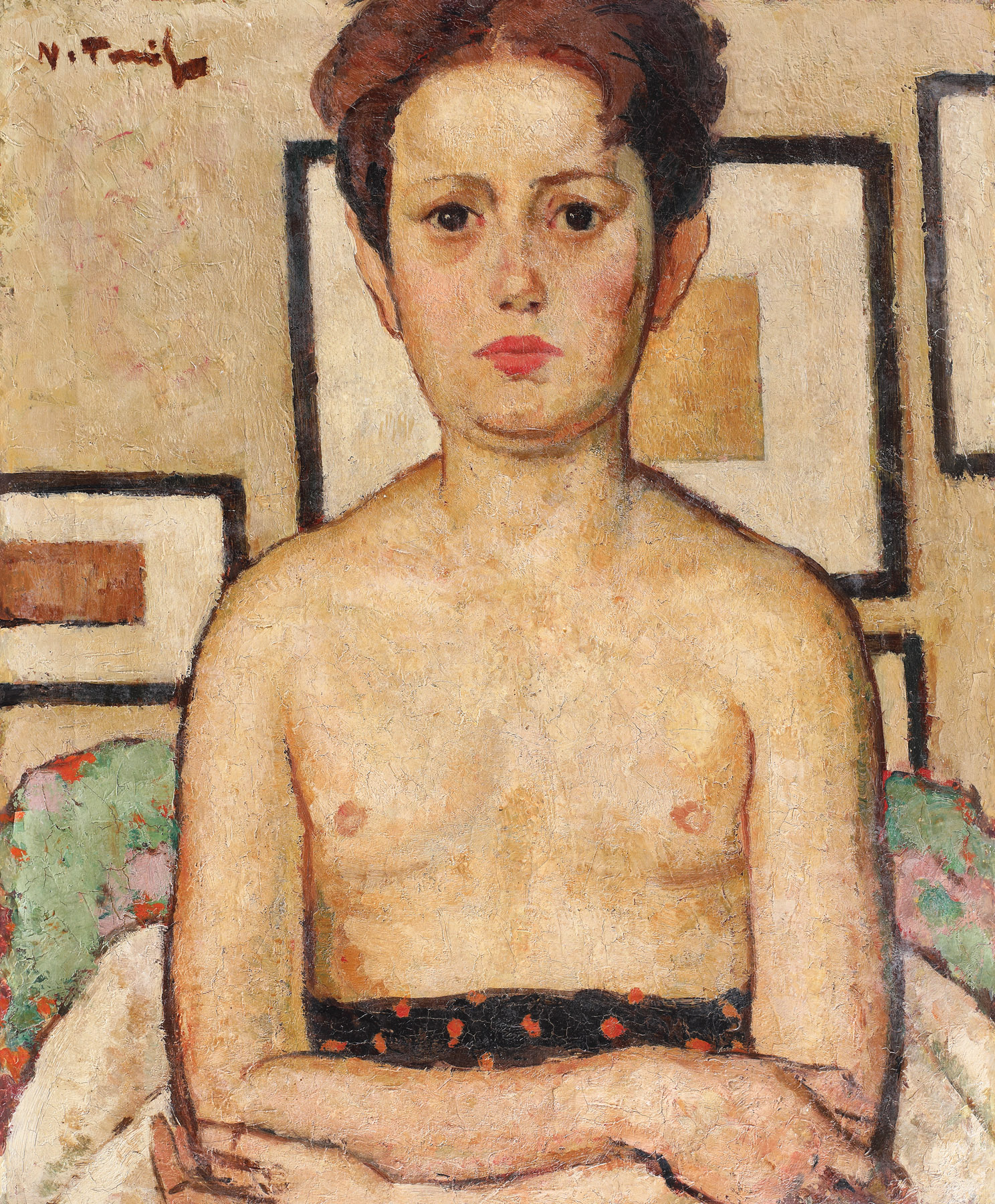 semnat stânga sus, cu brun, "N. Tonitza"