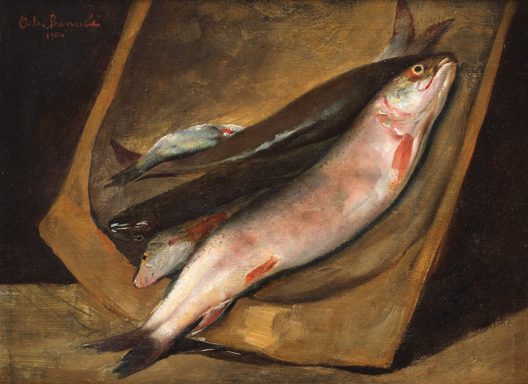 semnat și datat stânga sus, cu roșu, "Octav Băncilă, 1906"
