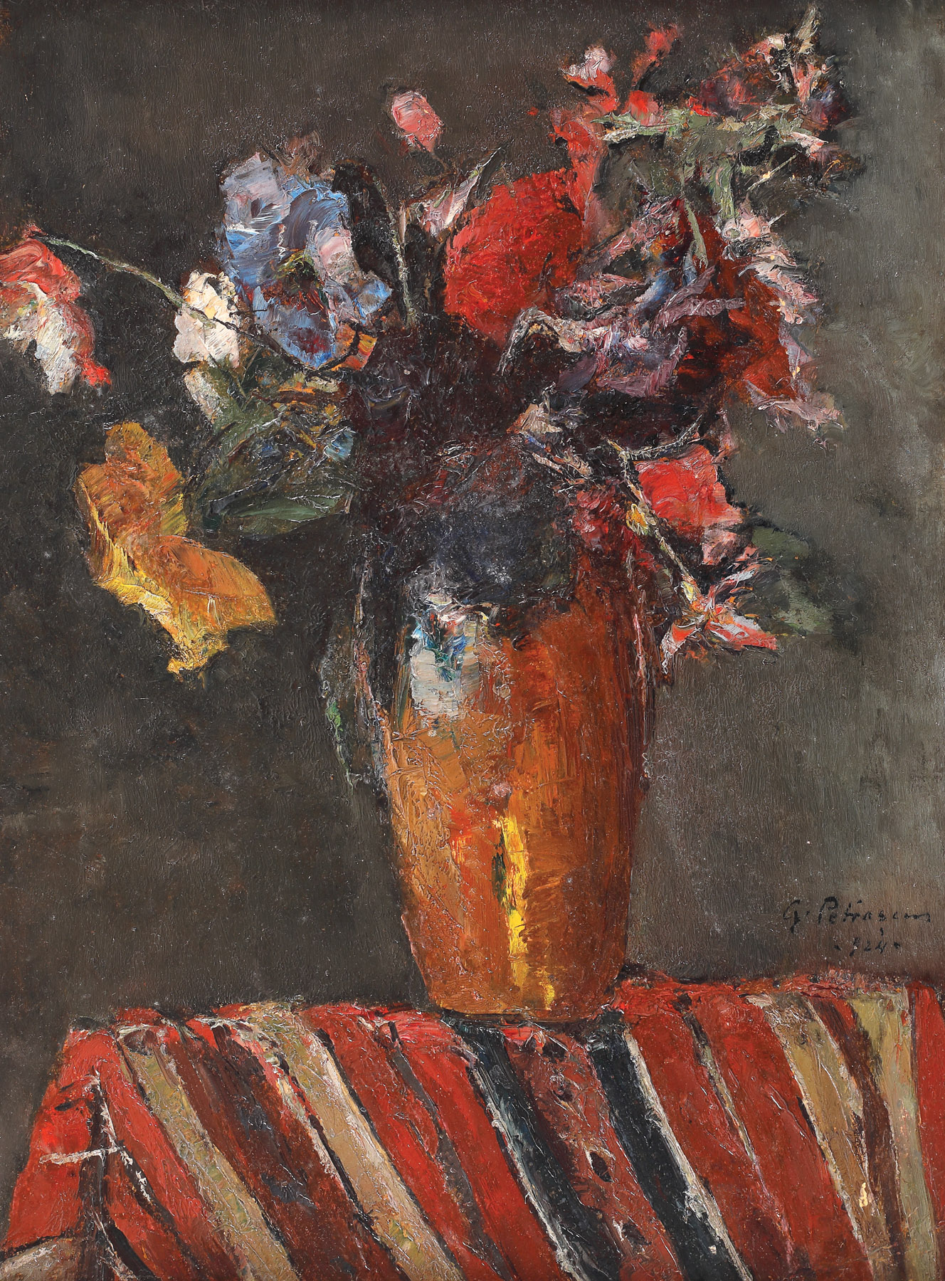 semnat şi datat lateral dreapta, cu negru, "G. Petraşcu, (1)924"