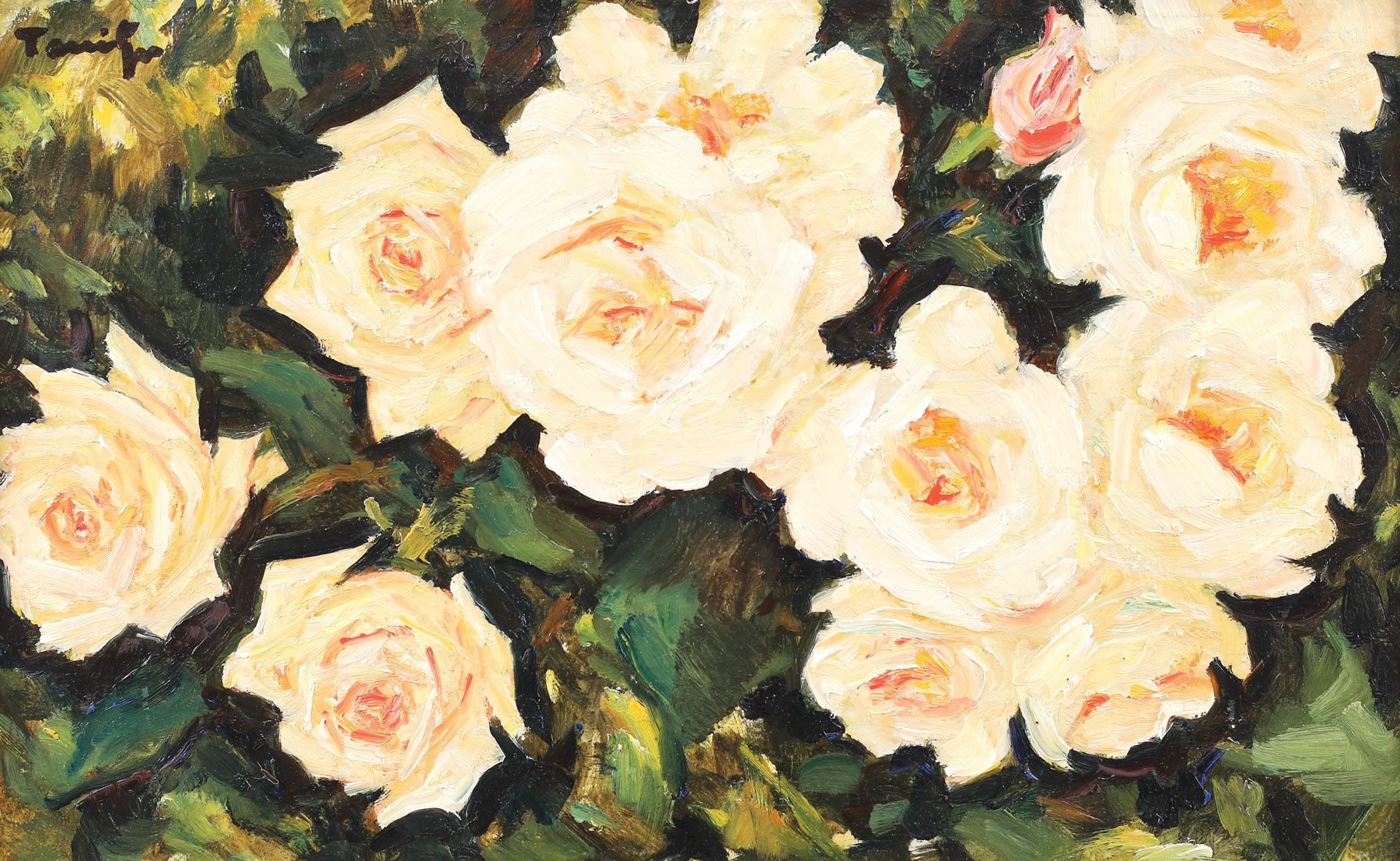 Armonist al formelor traduse prin culoare, pictorul Tonitza va acorda naturii de fiecare dată un studiu atent, studiu care îl va ajuta la organizarea compoziției în sens interior. Va admira profund atenția pictorilor către compozițiile simple, pe care le va considera sincere și lipsite de emfaze ori exagerări, adoptând la rându-i aceleași preferințe și în cazul propriilor compoziții. În ceea ce privește studiul în aer liber, pe care îl realizează cu dese ocazii, pictorul propune pentru o înțelegere aprofundată un studiu liber în natura înconjurătoare, observată cel mai indicat în anotimpul de vară, atunci când culoarea se revarsă liber și luminos asupra formelor. Găsește natura mereu interesantă și instructivă iar pentru aranjarea compoziției va ține cont de distribuirea elementelor constructive, de proporții și de armonii, tratând mereu motivul ca pe un element solid, pe care îl învăluie ulterior în culoare. În mijlocul naturii pictorul va întâlni florile, care îl vor inspira și cărora le va acorda nenumărate studii. De la flori de câmp, la iriși, margarete, bujori, garoafe, gladiole, begonii, gura-leului, mimoze, petunii, anemone sau trandafiri, artistul va interpreta mereu florile cu încântare, făcându-se remarcate în creația sa cu ocazii diferitelor expoziții. Astfel, printre expozițiile în care remarcăm prezența florilor se vor regăsi: Expoziția comună „N. N. Tonitza – Ștefan Dimitrescu”, din ianuarie- februarie 1920, Expoziția „Grupului celor patru”, din 1928 sau Exhibiția comună, „N. N. Tonitza - Francisc Șirato”, din anul 1938, în urma cărora tema florilor va fi foarte apreciată atât de public, cât și de criticii de artă, care îl vor admira pentru meritele sale cromatice și armonioase. (G.M.)