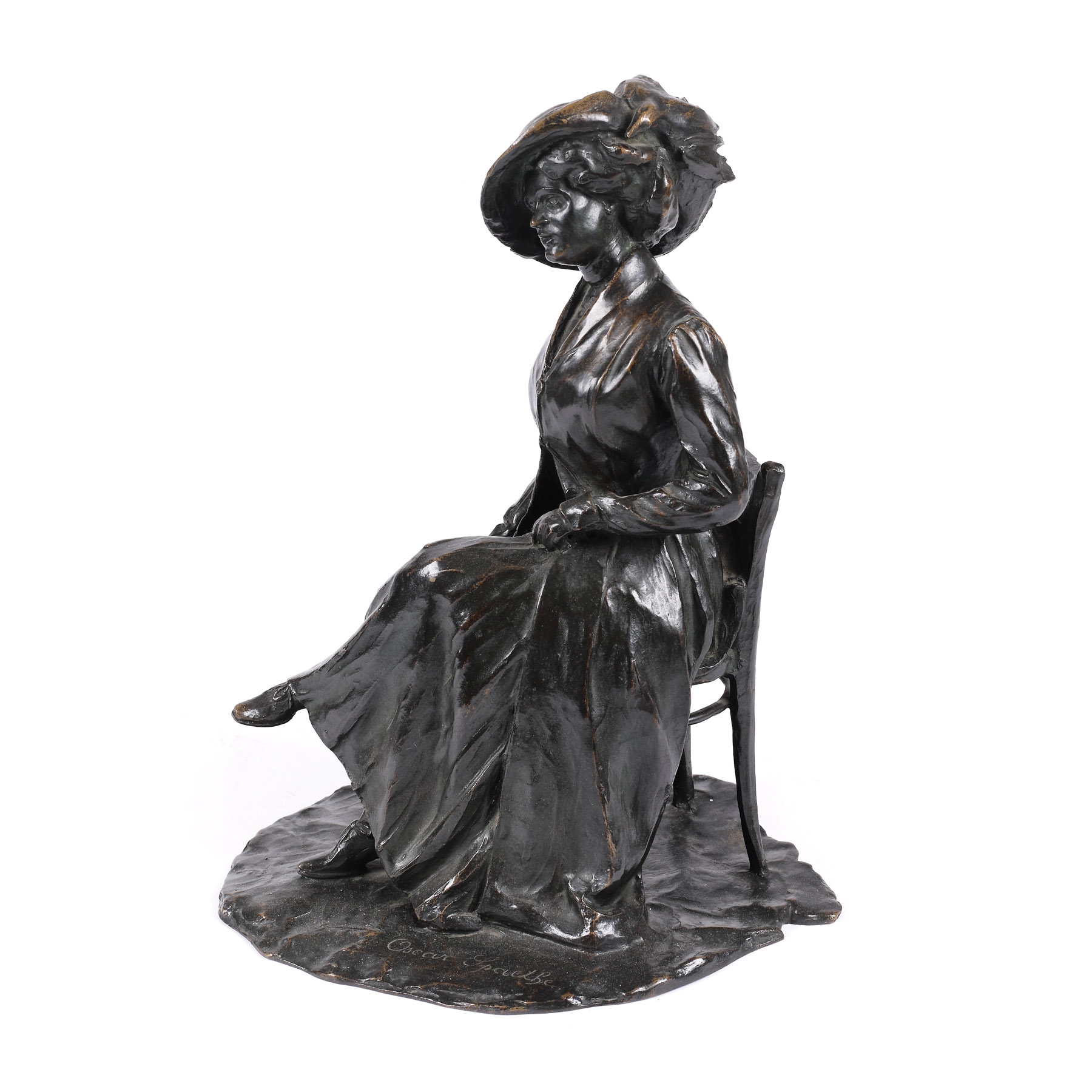 semnat lateral dreapta, "Oscar Spaethe"; în spate, datat şi menționată turnătoria, "TURNAT DIN O SINGURĂ BUCATĂ; V.V. RĂŞCANU & COMP., BUCUREŞTI, 1910"