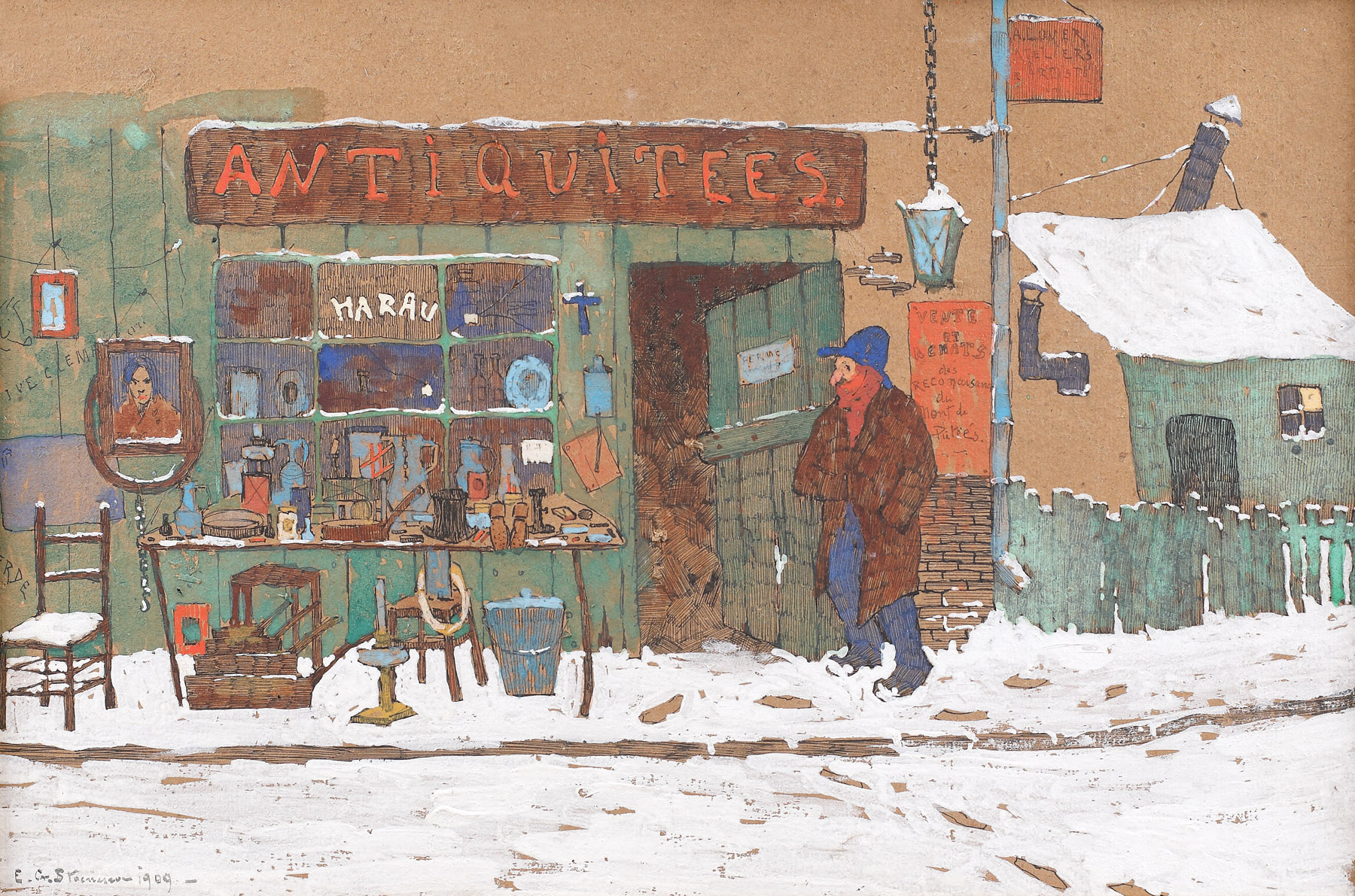 semnat și datat stânga jos, în peniță, "E. C. Stoenescu, 1909"