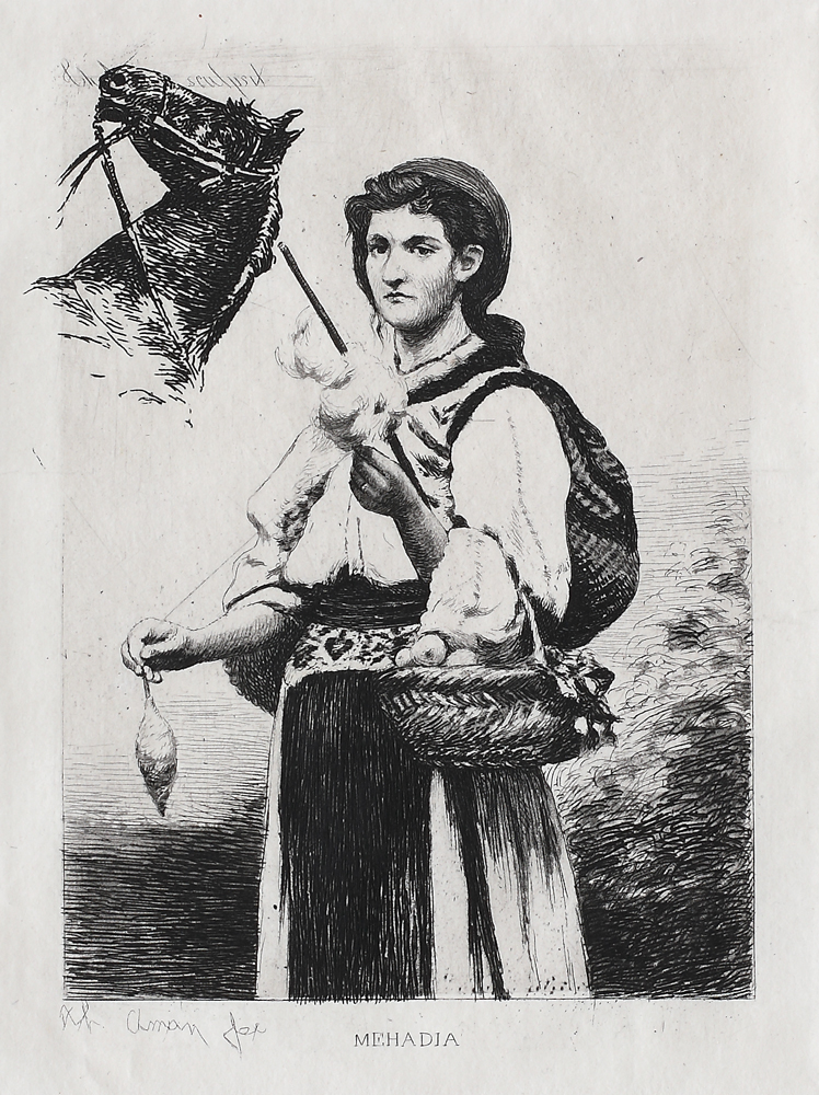semnat, gravat, stânga jos, sub cadru, "Th. Aman fec."; inscripţie gravată central jos, sub cadru, "MEHADIA"; semnat, gravat stânga sus, în cadru, "Th. Aman sculpsit"