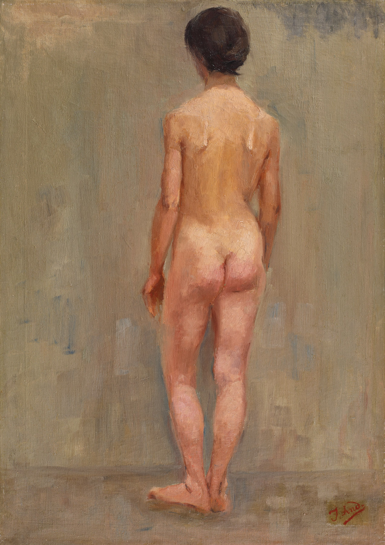 Opera este inventariată în arhiva Radu Bogdan sub titlul "Studiu de nud cu spatele" și figurează în catalogul raisonné "Andreescu" pregătit de Radu Bogdan și rămas manuscris, la poziția 112. Critic de artă și monografist al pictorului, în cei 50 de ani dedicați creației lui Ioan Andreescu. Actualmente Arhiva Radu Bogdan se află în proprietatea fundației ce poartă numele maestrului.