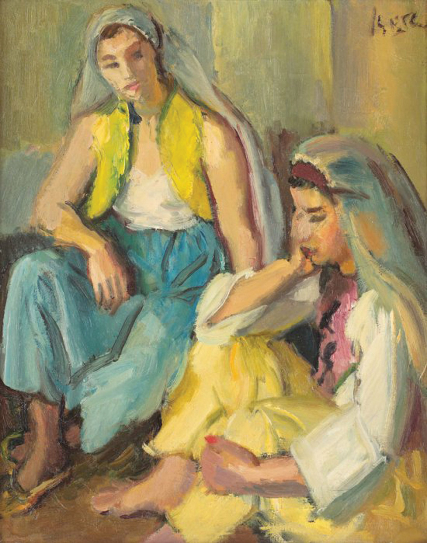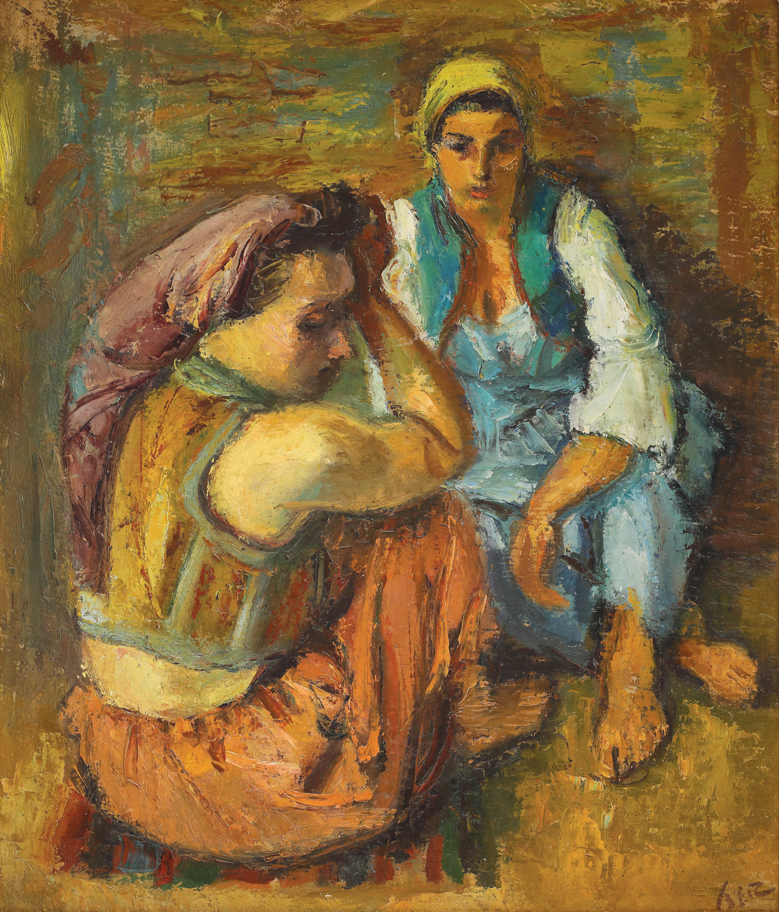 Observator eminent și înzestrat cu o mare putere de sinteză, artistul Iser își va găsi mereu inspirația în lumea realităților. Aici va întâlni omul, care va sta la baza întregii sale creații și căruia îi va consacra un loc deosebit. De la țăranii din Argeș, la țăranii ostași, chemați pentru apărarea patriei în anul 1916, la tătarii dobrogeni, la făuritorii de cultură, precum și la anonimii circurilor și teatrelor, Iser va surprinde omul în mai multe ipostaze, relevându-l în interpretări plastice neasemuite. Un filon major în creația sa va fi spațiul dobrogean, conturat în preajma anului 1913, când lua contact cu lumea atât de cuceritoare a tătarilor și a turcilor, stabiliți pe meleagurile românești. Campania stabilită aici îi oferea pictorului șansa de a-i cunoaște îndeaproape, de a le observa obiceiurile și trăsăturile, în această perioadă realizând și primele tablouri unde remarcăm aceste naționalități. Tot din mijlocul spațiului dobrogean va lua naștere mai târziu și seria odaliscelor, pictatate de artist între anii 1921-1945, surprinse în ipostaze felurite și reliefând coordonate spirituale distincte. Șezând adesea pe gânduri și înveșmântate în mătăsuri strălucitoare, în interioare înțesate de covoare, le vom regăsi pioase, vesele, senzuale și adesea melancolice. Realizată în preajma anilor ’40, perioadă în care datorită dictaturii militaro-fasciste artistul era exclus de pe simezele oricărei instituții, opera „Tătăroaice” se încadrează în seria lucrărilor de atelier, perioadă în care pictorul va continua să lucreze intens, susținut de prieteni și de admiratori. (G.M.)