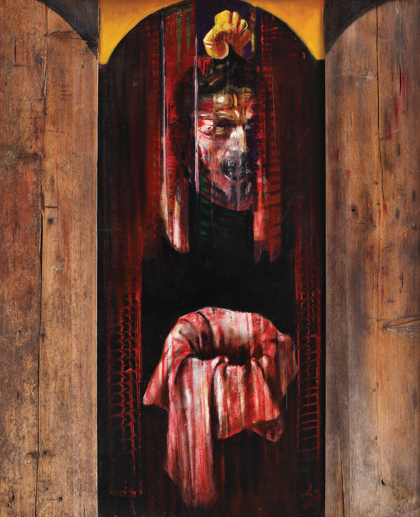 semnat stânga jos, cu roșu, "Ghenie"; semnat pe șasiu, cu negru, "Ghenie Adrian"