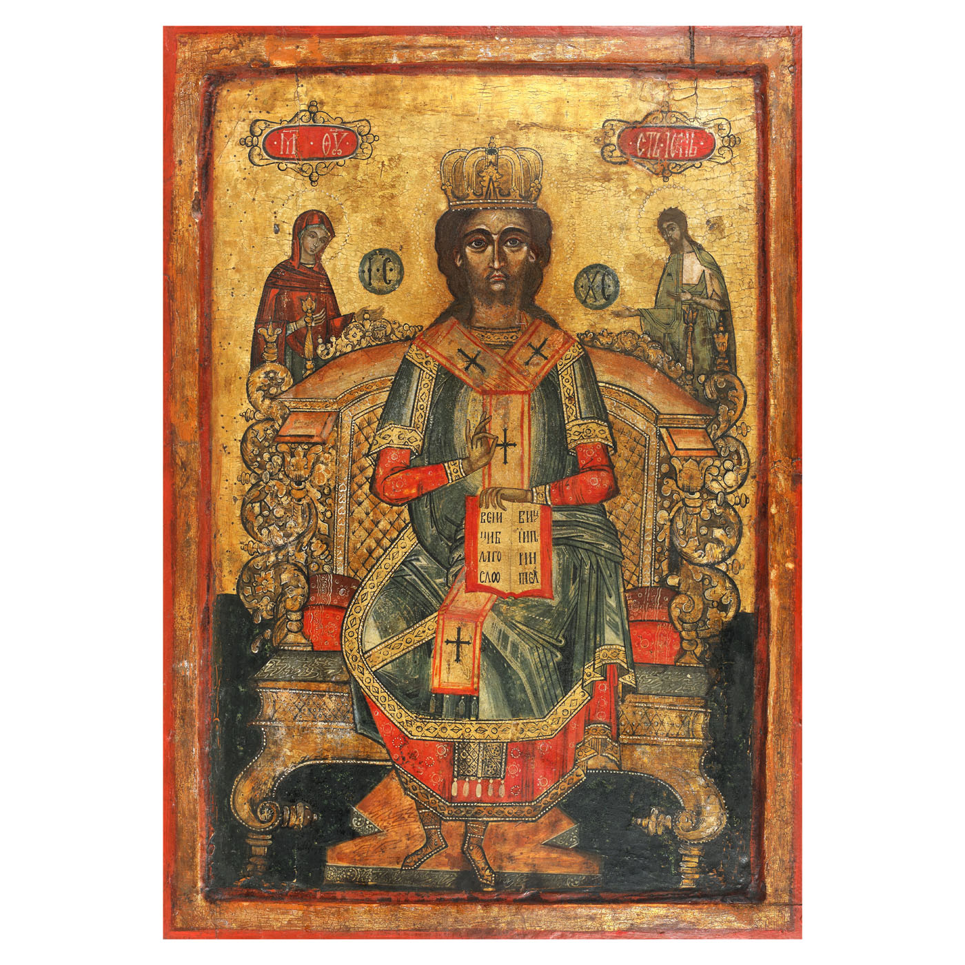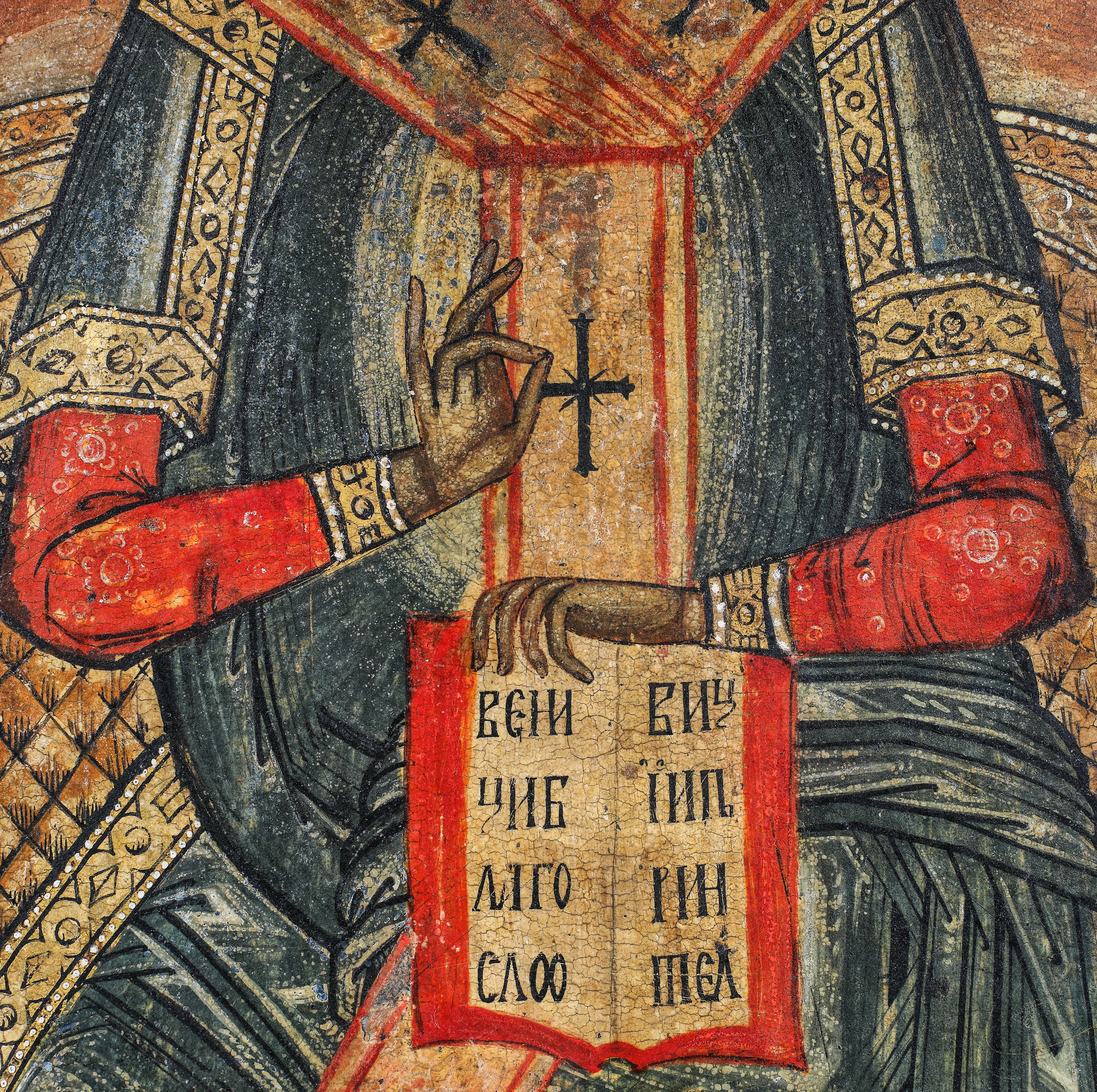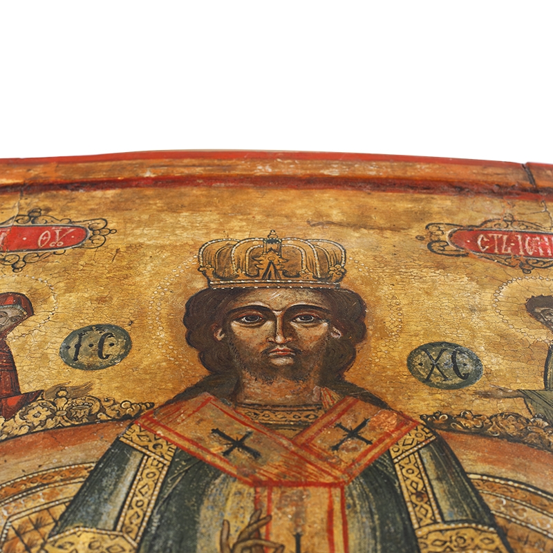 63. Icoană împărătească pe lemn, "Iisus Hristos Împărat și Mare Arhiereu", Țara Românească, școală post-brâncovenească, a doua jumătate a sec. XVIII, de colecție